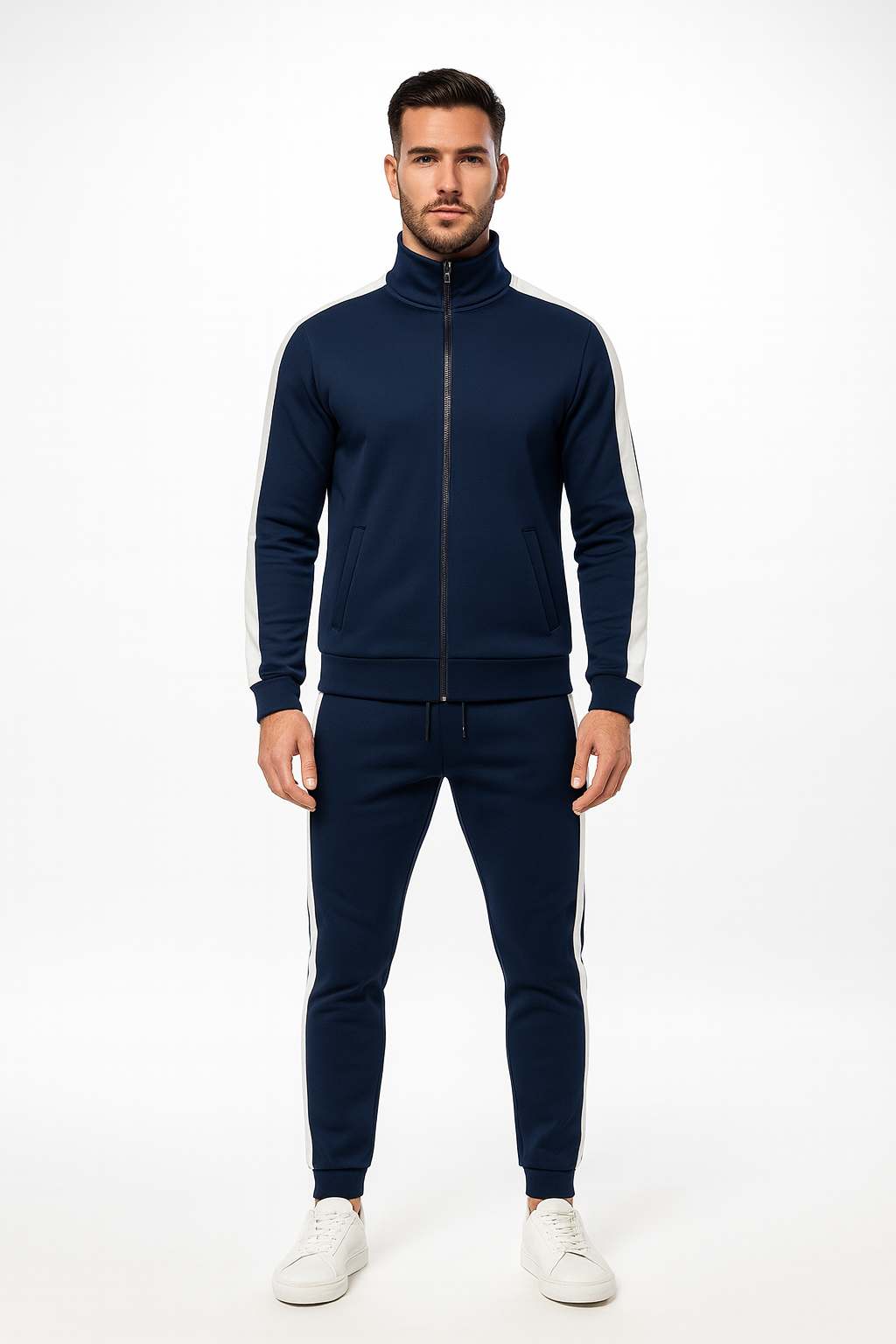 Dieser stilvolle Trainingsanzug für Herren bietet eine perfekte Kombination aus Komfort und Funktionalität. Hergestellt aus einer hochwertigen Polyester-Mischung, sorgt er für eine optimale Bewegungsfreiheit und behält gleichzeitig seine Form. Die glatte Oberfläche und die modernen Designelemente machen ihn ideal für sportliche Aktivitäten oder entspannte Freizeitlooks.