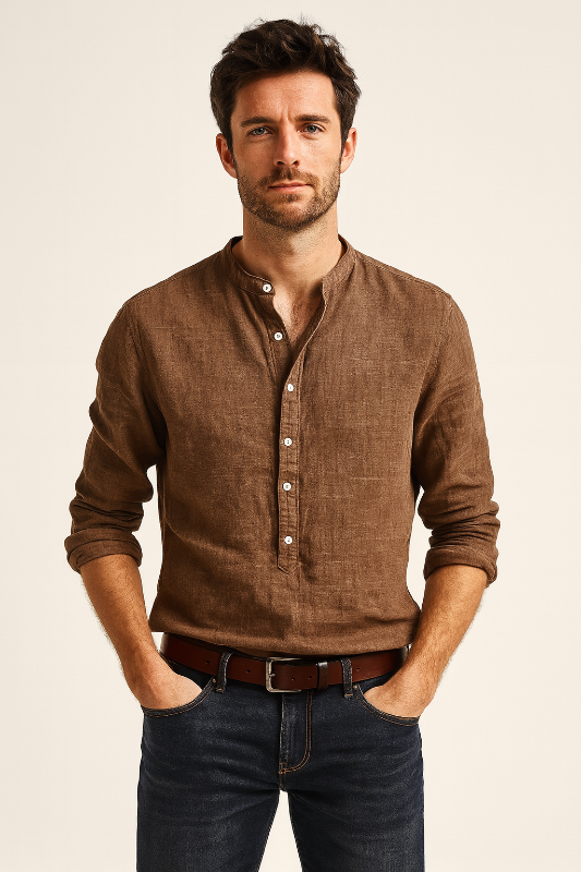 Herren Leinenhemd Langarm für Elegante Anlässe - Klassische Hemden Herren