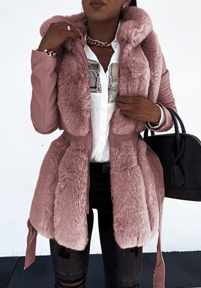 Kunstpelz-Ledermantel für Frauen - Hylda