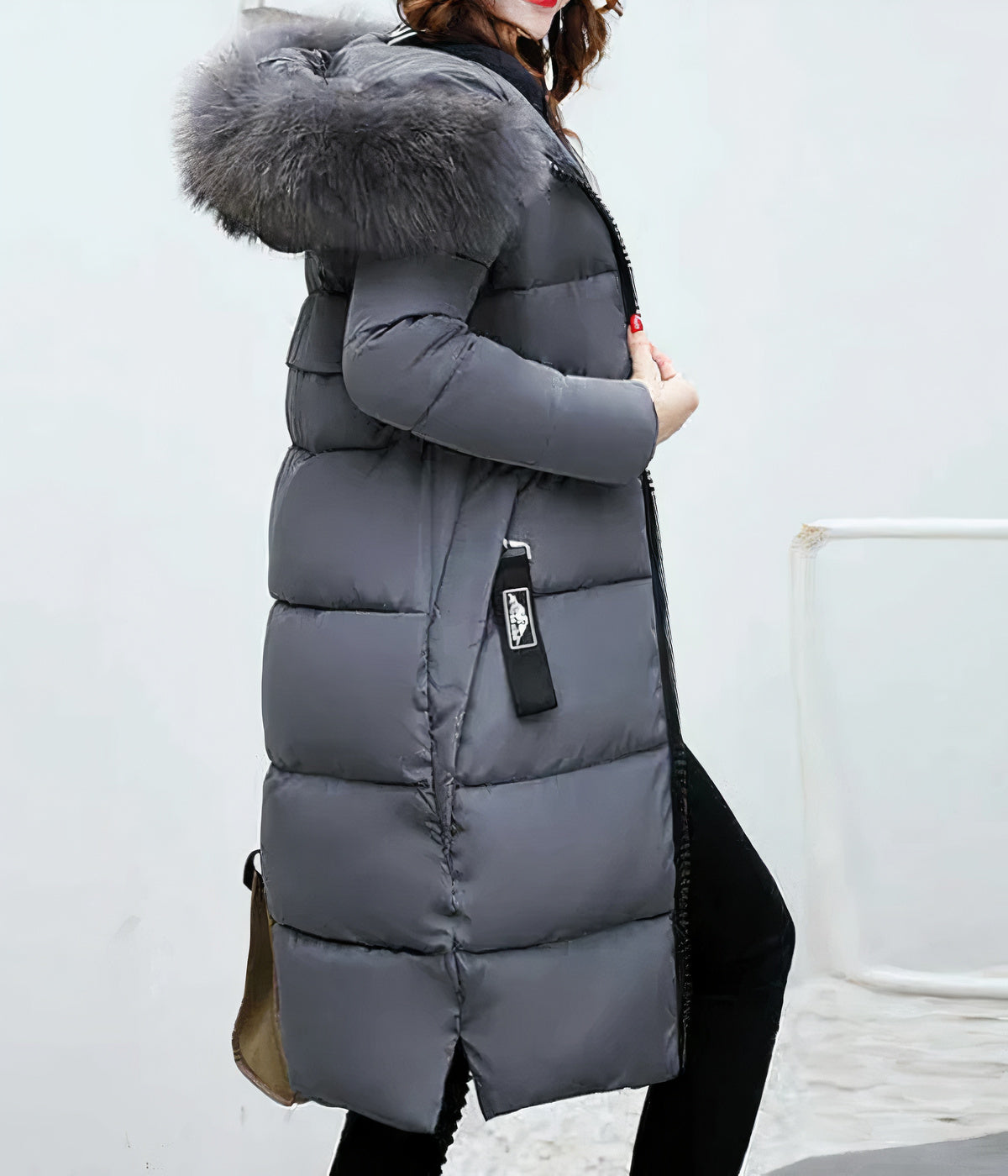Verleihen Sie Ihrem Winterlook mit dem Langer Mantel mit Pelzkragen - Kora, der mit einem Plüschpelzkragen verziert ist, eine neue Note. Er wurde für alle entworfen, die Eleganz und Wärme zu schätzen wissen. Seine elegante Silhouette hält Sie nicht nur warm, sondern wertet auch Ihr Outfit auf und macht ihn perfekt für jeden Anlass – von lässigen Ausflügen bis hin zu formellen Veranstaltungen. Der luxuriöse Pelzkragen verleiht einen Hauch von Opulenz und sorgt dafür, dass Sie in jeder Menschenmenge auffallen. Erleben Sie diese Saison die perfekte Mischung aus Stil und Komfort mit einem Mantel, der raffinierte Mode verkörpert.