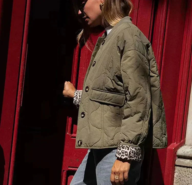 Bewältige kalte Tage mit Leichtigkeit in diesem leichten gepolsterten Layer, der alltägliche Funktionalität mit einem unverwechselbaren Stil kombiniert. Die oversized Silhouette bietet eine entspannte Eleganz, während die großen Taschen praktische Nützlichkeit mit modernem Charme vereinen. Hergestellt aus einem weichen und gemütlichen Stoff, hält sie dich warm, ohne zusätzliches Volumen hinzuzufügen. Ob du zu einem Brunch gehst oder shoppen gehst, diese Jacke vervollständigt deinen Look mit einem Hauch von natürlicher Eleganz.