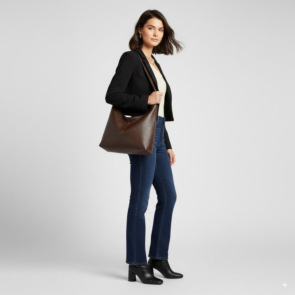Diese Tasche wird schnell zu deiner täglichen Lieblingsbegleiterin. Aus hochwertigem, veganem Leder gefertigt, bietet sie eine elegante und gleichzeitig robuste Ausstrahlung. Der zeitlose Siehe passt sowohl ins Büro als auch zum Wochenendoutfit – und mit ihrem durchdachten Stauraum bleibt alles Wichtige griffbereit. Du wirst sie jeden Tag tragen wollen – und sie wird jedes deiner Outfits aufwerten.