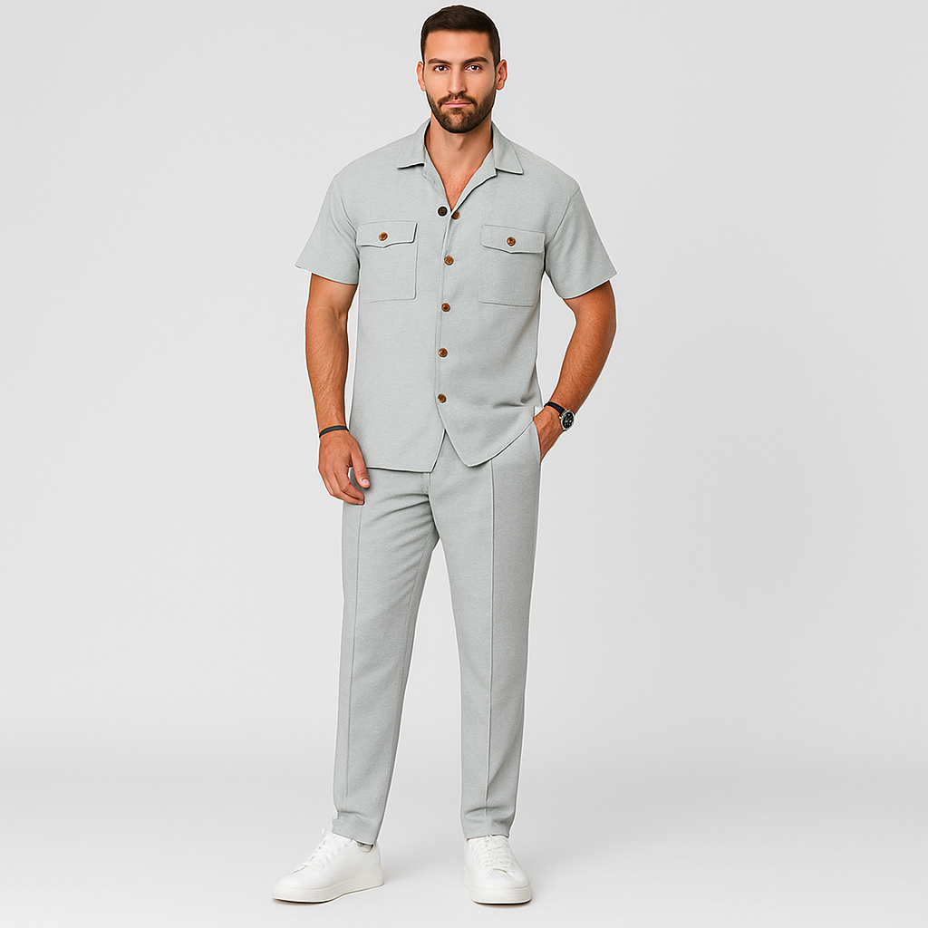 2-teiliges Sommer-Set für Herren – Lässiges Strandhemd mit Doppeltaschen und passende lange Hose