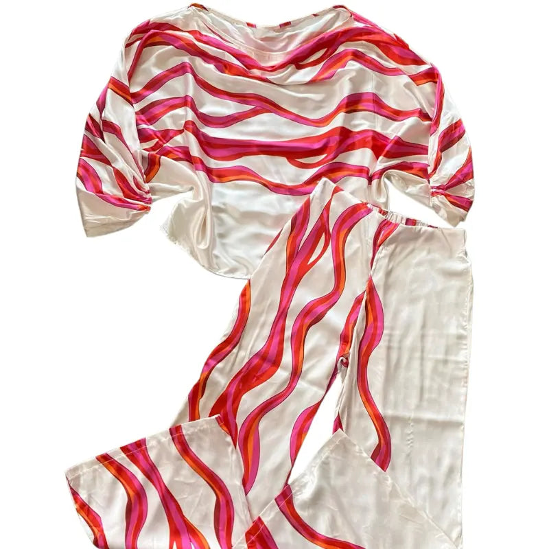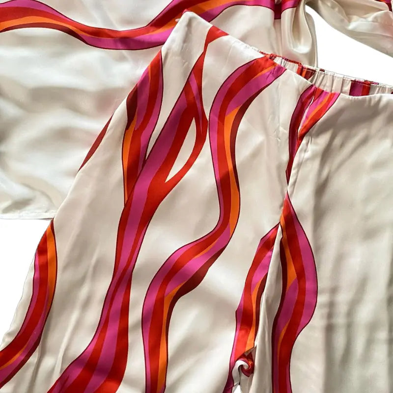 Sag Lebewohl zu Kompromissen zwischen Stil und Komfort, denn unser zweiteiliges Set ist hier, um deine Garderobe zu transformieren und dich phänomenal aussehen zu lassen, egal zu welcher Jahreszeit. Dieses Set besteht aus einem wunderbaren Stoff mit einem raffinierten Print und hebt die Frühlings- und Sommermode auf ein neues Niveau.