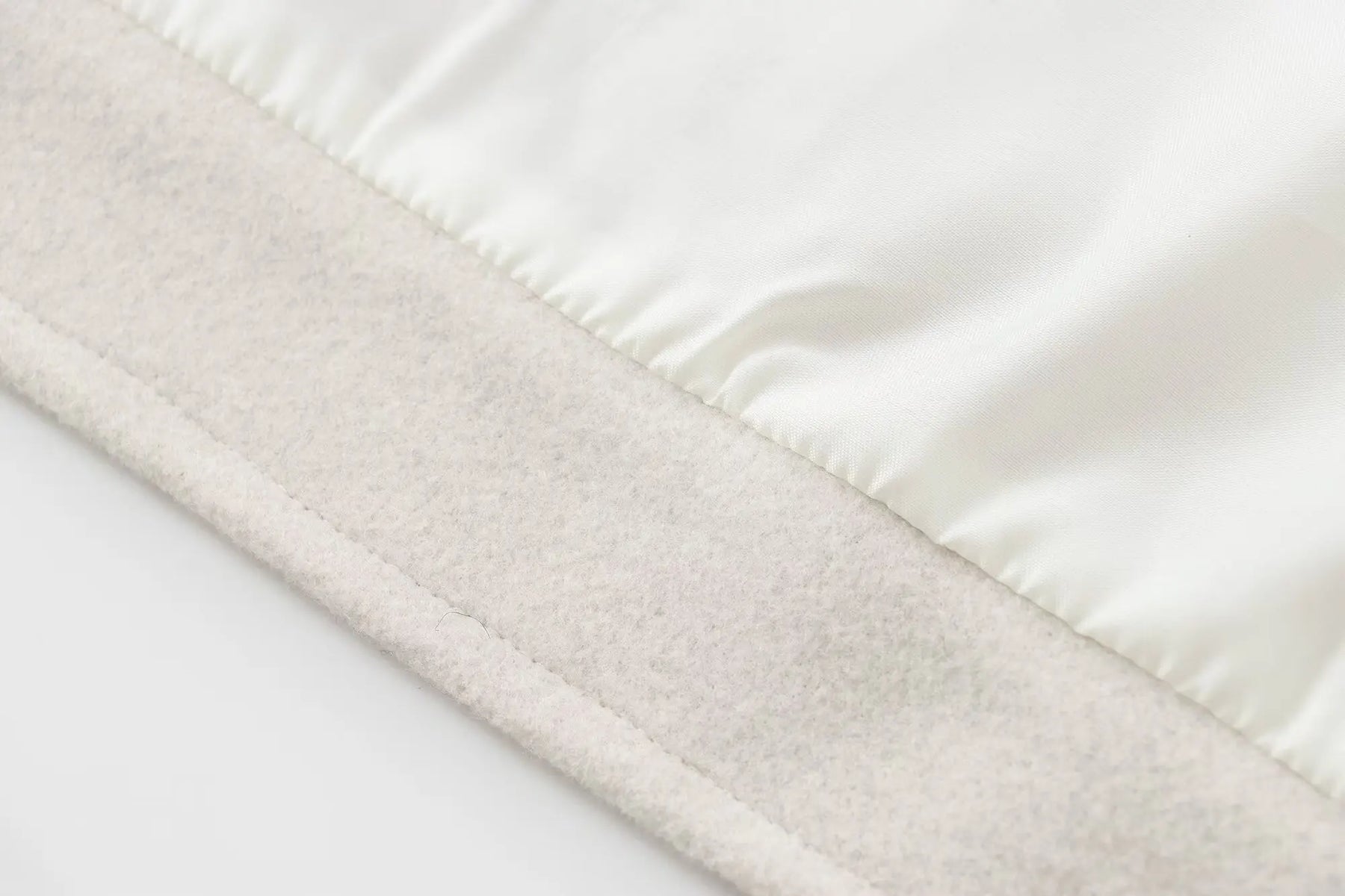 Diese kurzjacke vereint cleanen streetstyle mit softem wollmix. der umlegekragen und der goldfarbene zip setzen dezente akzente, während große taschen funktional bleiben. leicht zu kombinieren mit denim, knit und boots – eine vielseitige damen jacke für jeden tag.