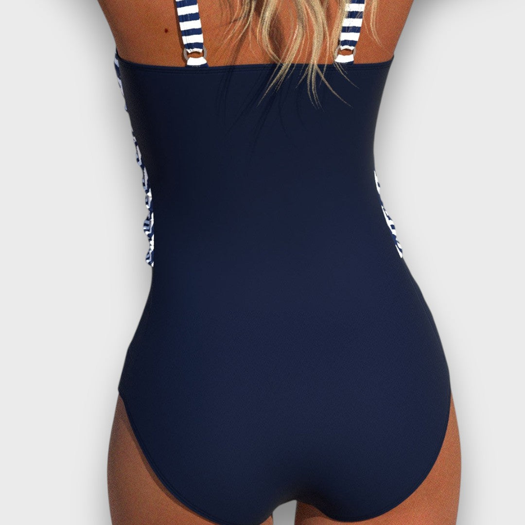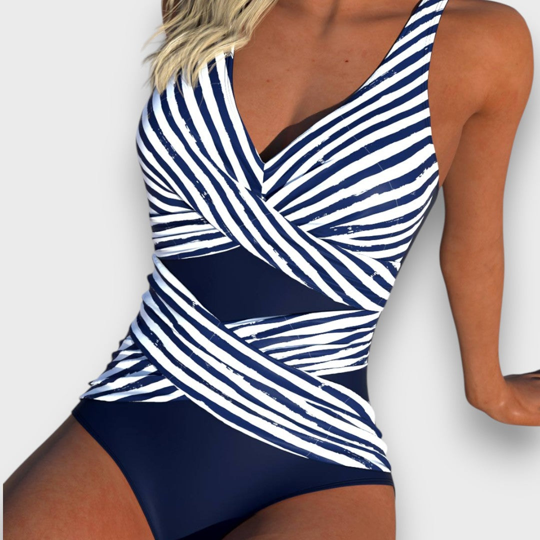Astrid – Farbintensiver Badeanzug mit überkreuztem Vorderteil