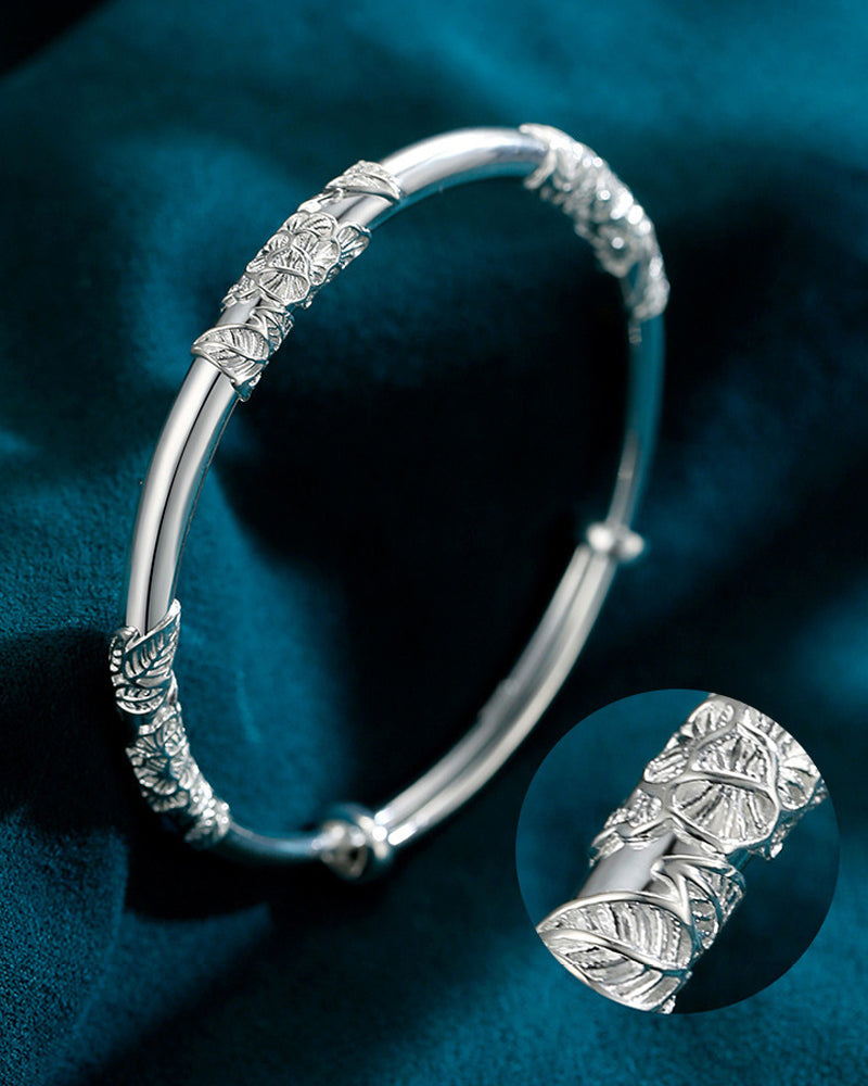 Dieses exquisite Armband für Damen ist aus hochwertigem Sterling Silber gefertigt und besticht durch seine filigranen eingravierten Blumen- und Blattmotive. Es ist das perfekte Accessoire für Frauen, die stilvolle und dennoch natürliche Designs schätzen.
