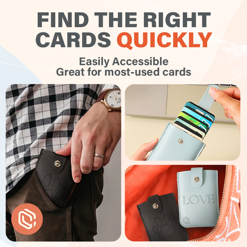 Verabschieden Sie sich von Geldbörsenkämpfen! Mit einem einfachen Zug am Tab haben Sie Zugriff auf Ihre am häufigsten verwendeten Karten, ohne durch eine überfüllte Geldbörse wühlen zu müssen. Erleben Sie die Leichtigkeit, das zu greifen, was Sie brauchen, wann Sie es brauchen.