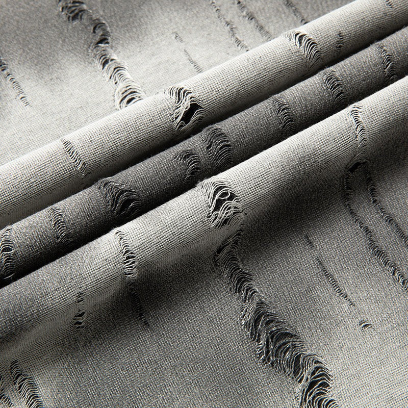 Dieses T-Shirt hat ein modernes Design mit einem abgenutzten visuellen Effekt, der vertikal gebrochene Texturen imitiert und einen unverwechselbaren urbanen Stil schafft. Die neutralen und taupefarbenen Grundtöne sorgen für Vielseitigkeit und sind ideal für alle, die auffallen wollen, ohne auf einen dezenten Stil zu verzichten.