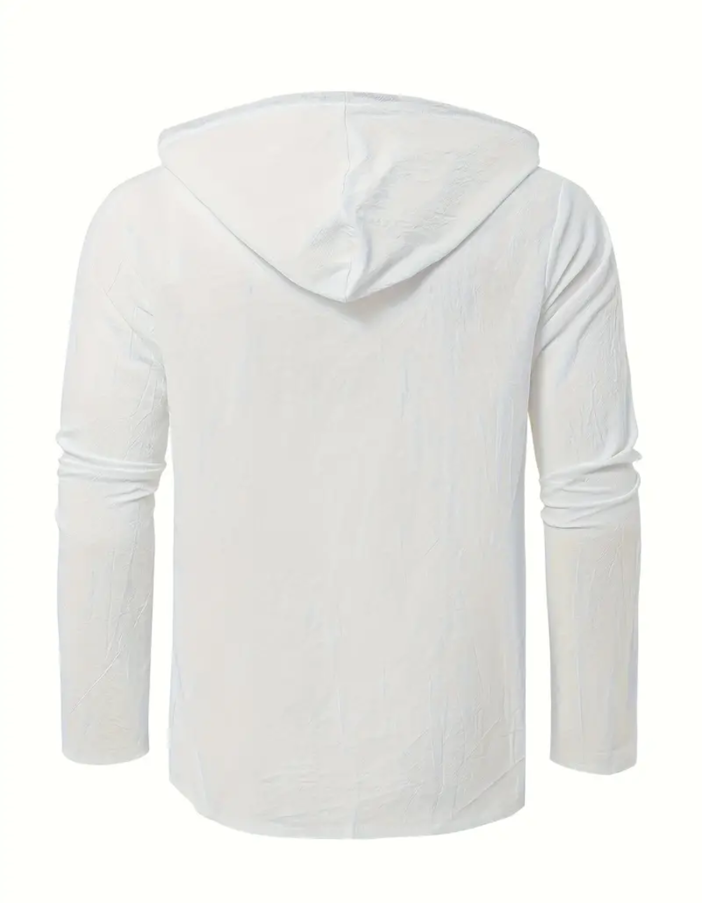 Entspannender Komfort: Mit seiner Kapuze und der Knopfleiste sorgt Blaise für die perfekte Mischung aus Komfort und Stil – ideal für warme Sommertage.