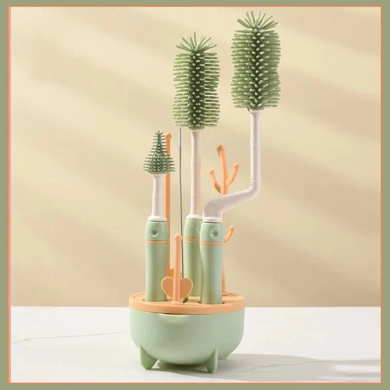 Wir präsentieren unser Set mit rotierendem Flaschenreinigungsbürstenhalter - die perfekte Lösung für mühelose Flaschenreinigung. Mit einem langen Griff für einfaches Erreichen und einem 360-Grad rotierenden Bürstenkopf sorgt dieses Set jedes Mal für eine gründliche Reinigung. Außerdem hält der praktische Trockengestell Ihre Bürsten hygienisch und ordentlich. Verabschieden Sie sich von schmutzigen Flaschen und begrüßen Sie ein glückliches, gesundes Baby!