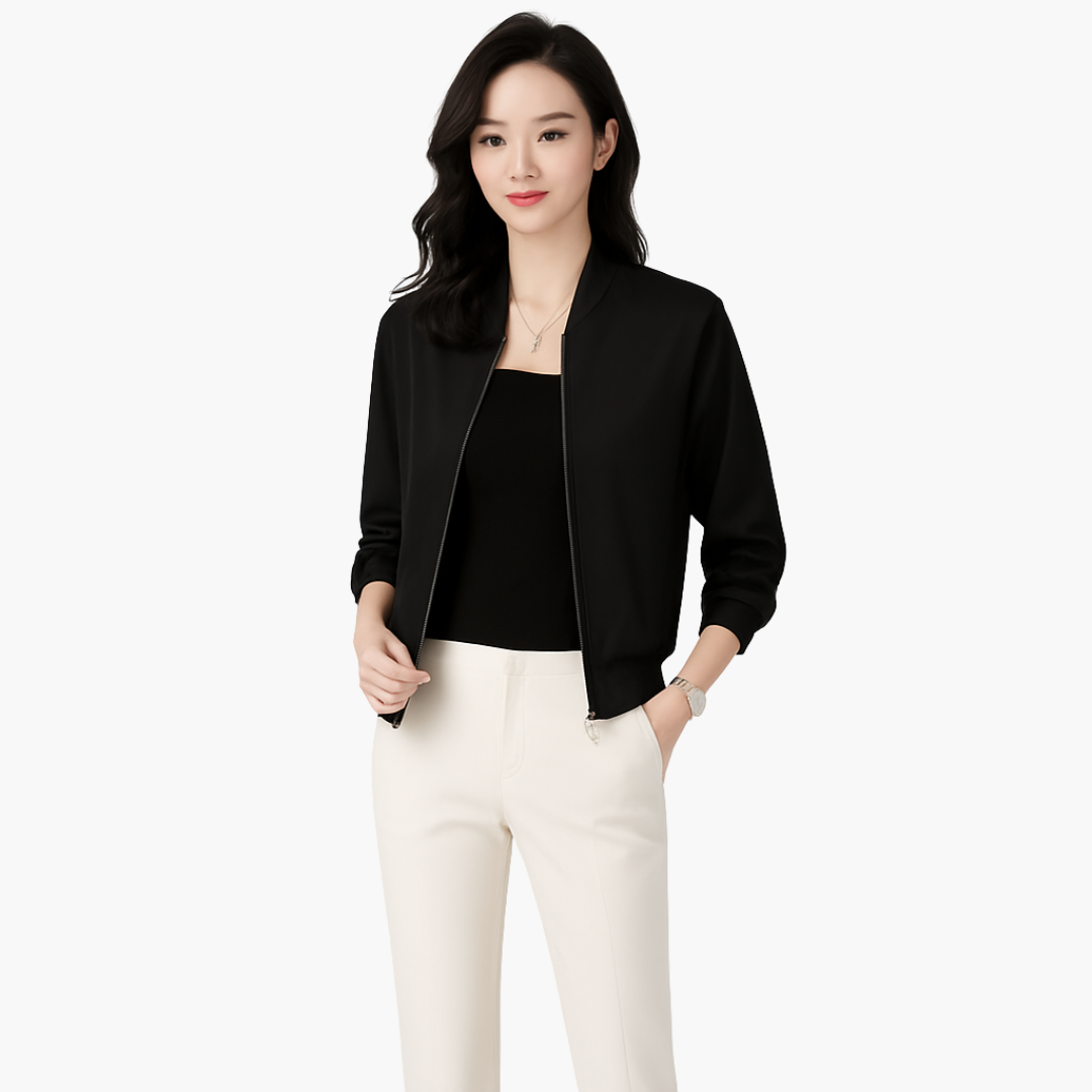 Damen Bomberjacke aus Satin mit Reißverschluss vorne