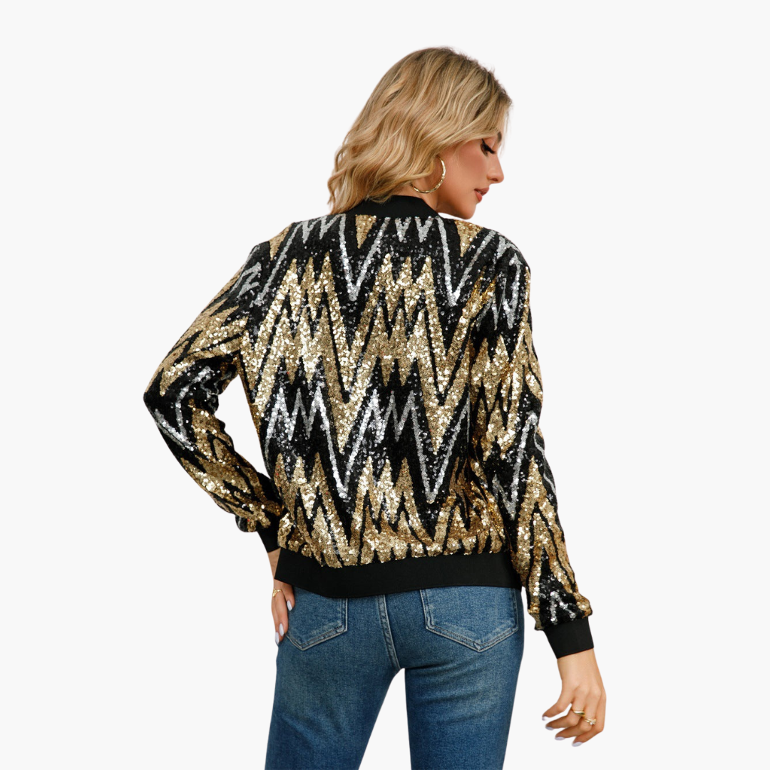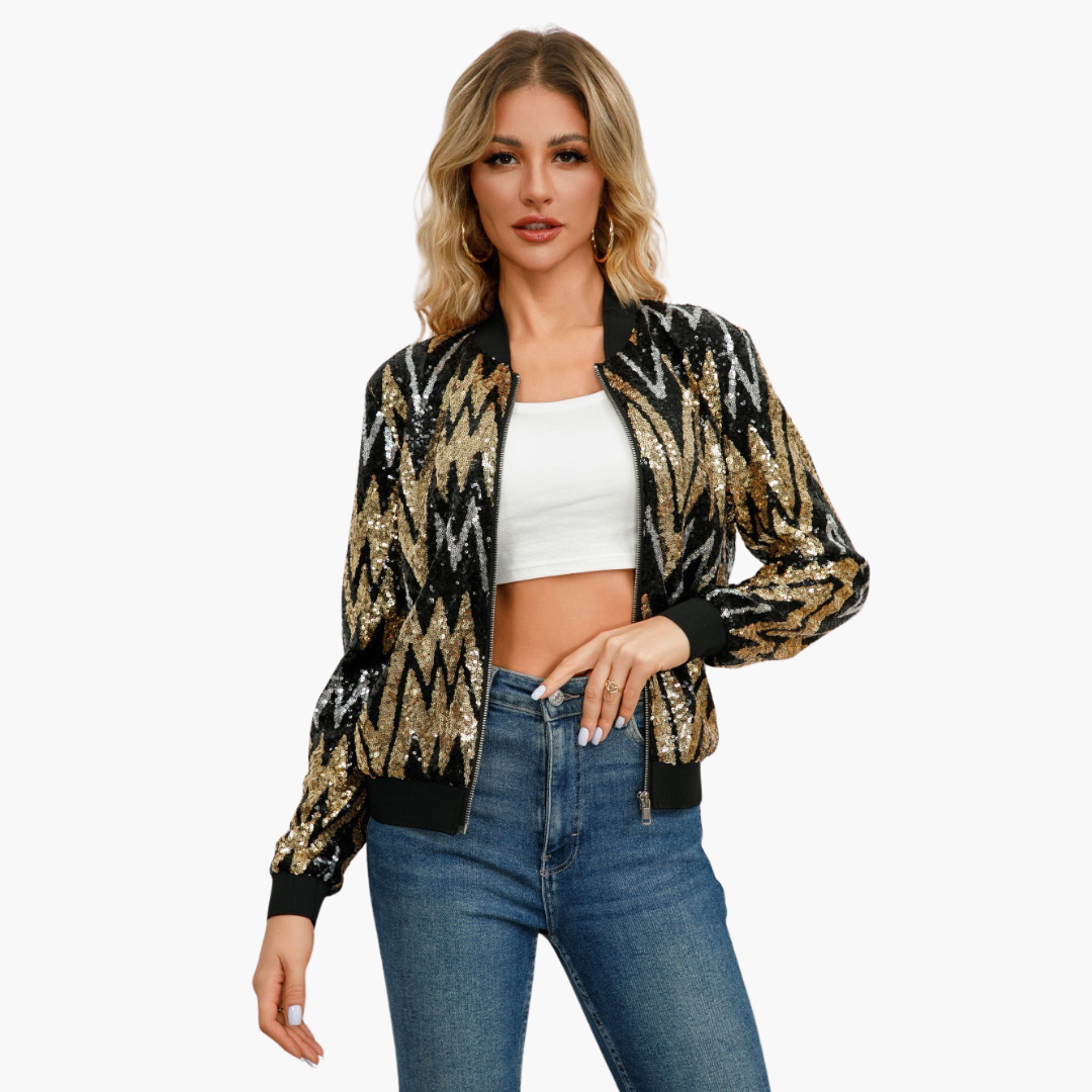 Damen Bomberjacke mit Reißverschluss und Paillettenoberfläche