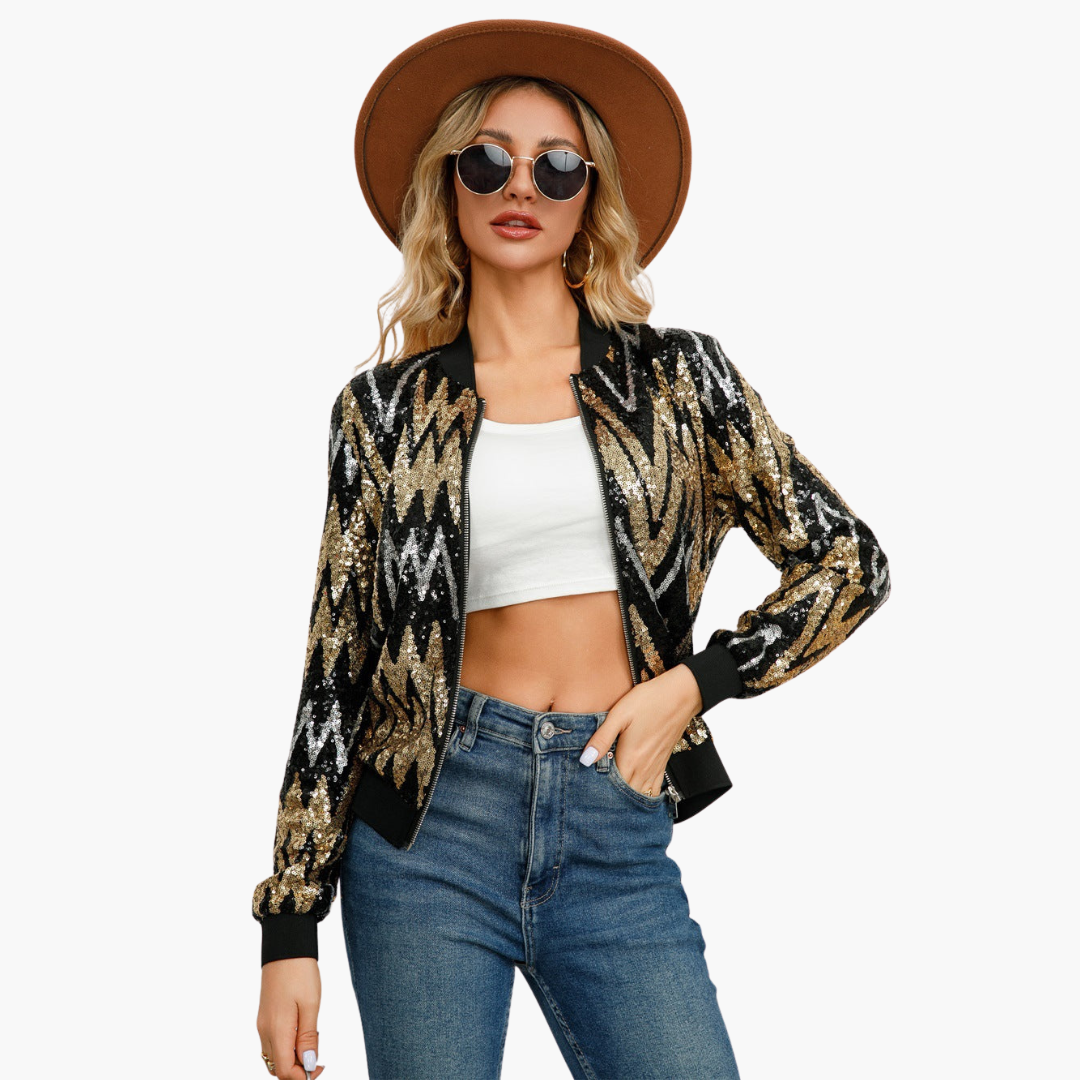 Damen Bomberjacke mit Pailletten und Reißverschluss