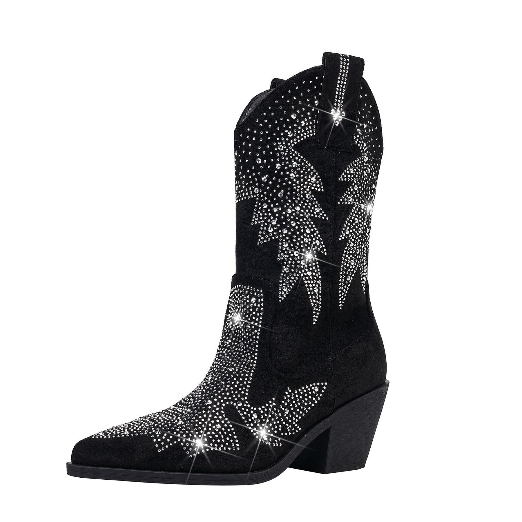 Entfesseln Sie Ihre innere Modeikone mit diesen halbhohen Cowboystiefeln für Damen – hier trifft Western-Flair auf raffinierte Eleganz. Mit ihrem eleganten Wildleder-Finish und den funkelnden Details sind diese Stiefel ein echter Hingucker. Ob zum Brunch oder zum Ausgehen – sie verleihen Ihrem Look Stil und Selbstbewusstsein.