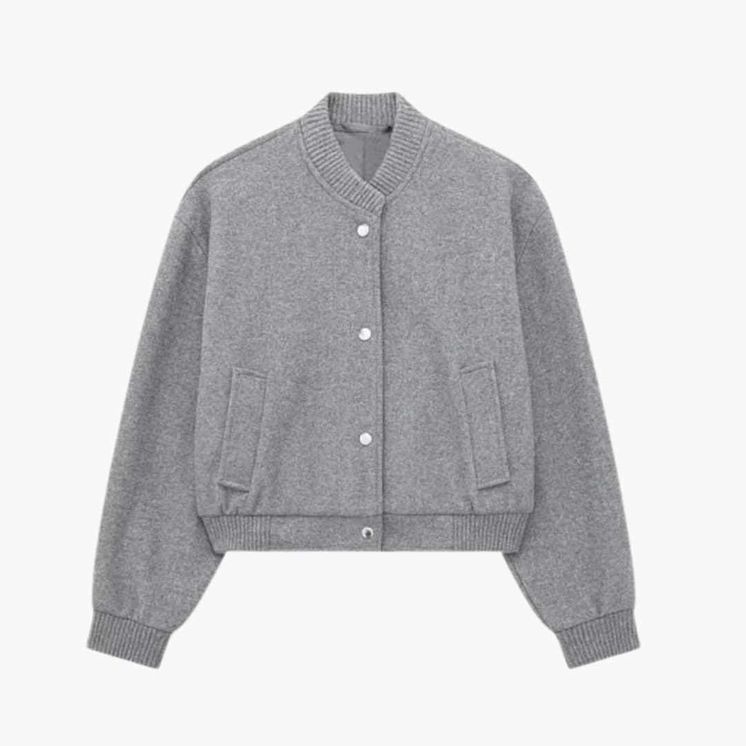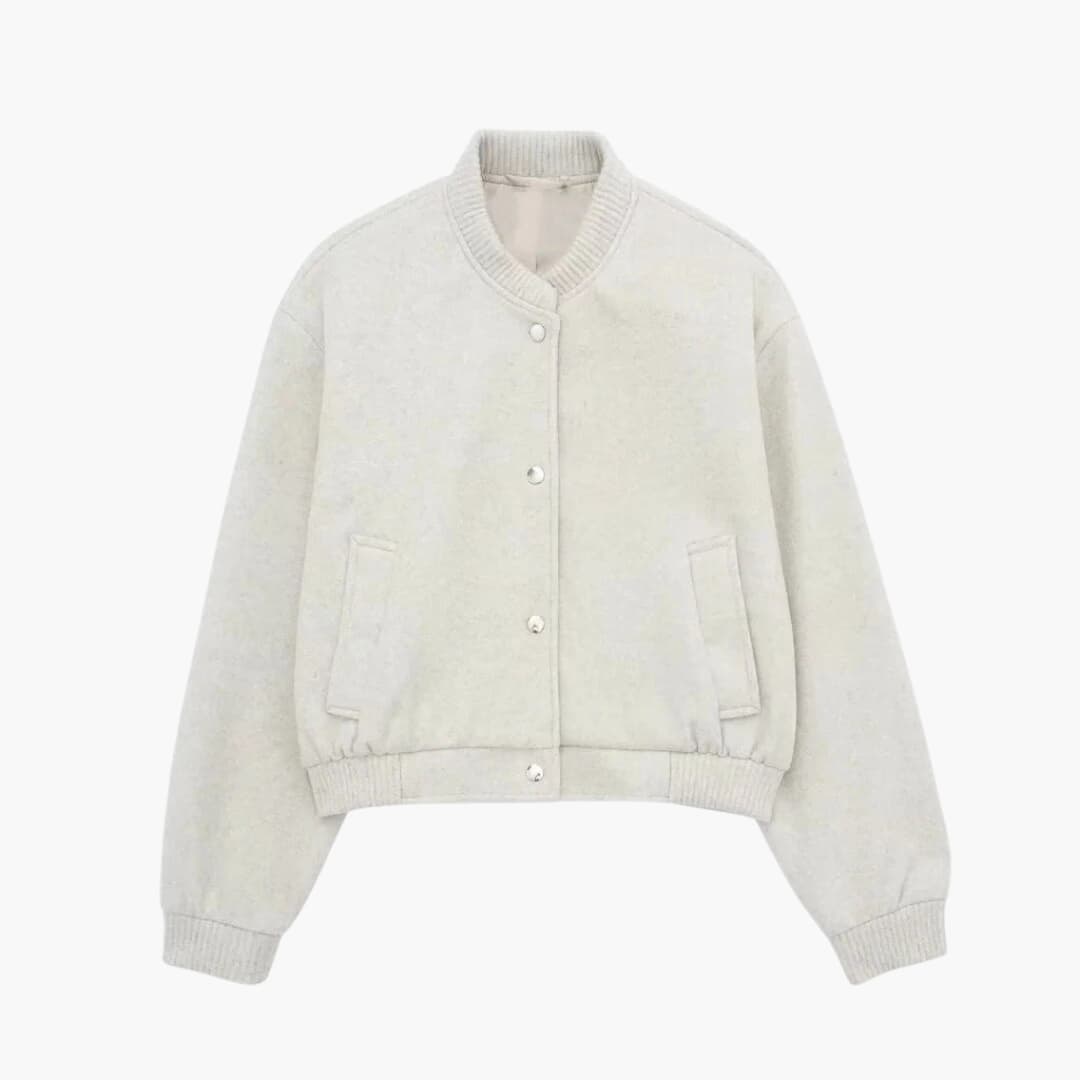 Damen Cropped Bomberjacke mit Knopfverschluss und Rippdetails.