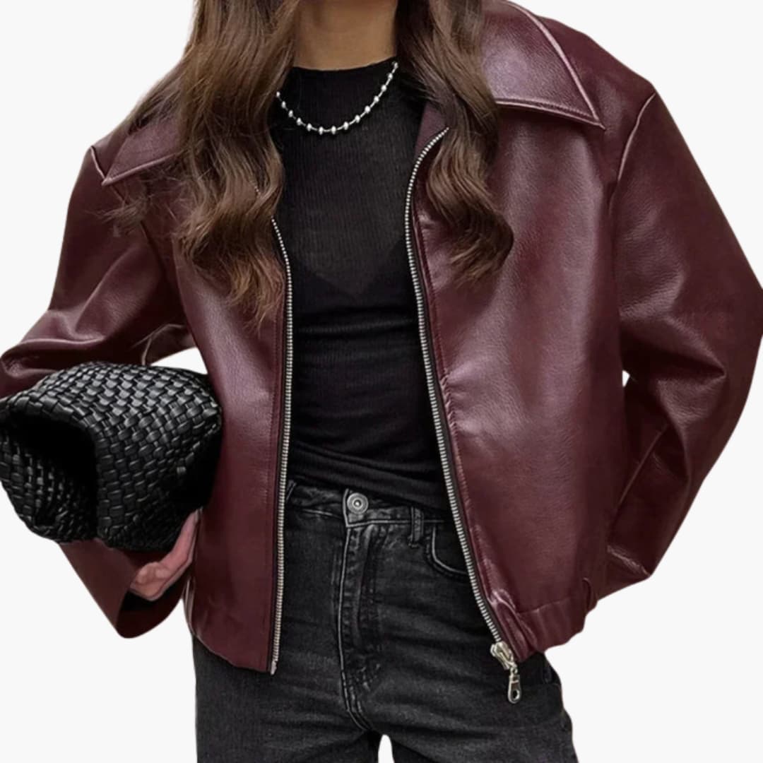 Damen jacke mit breitem Kragen und Frontreißverschluss.