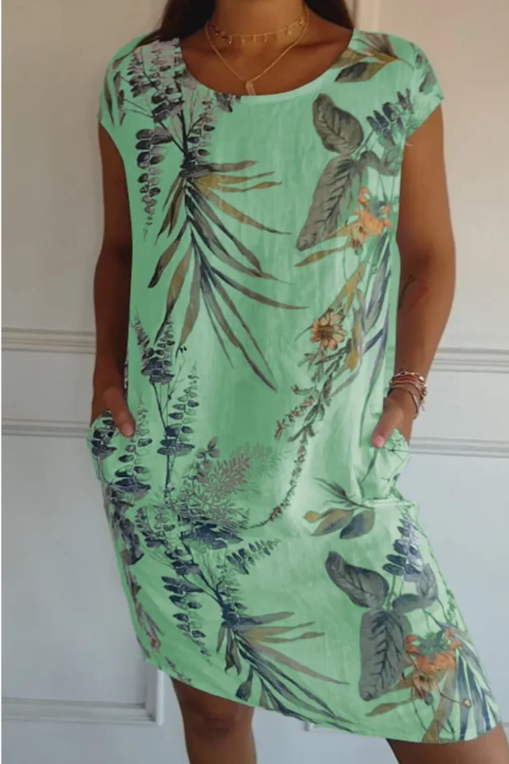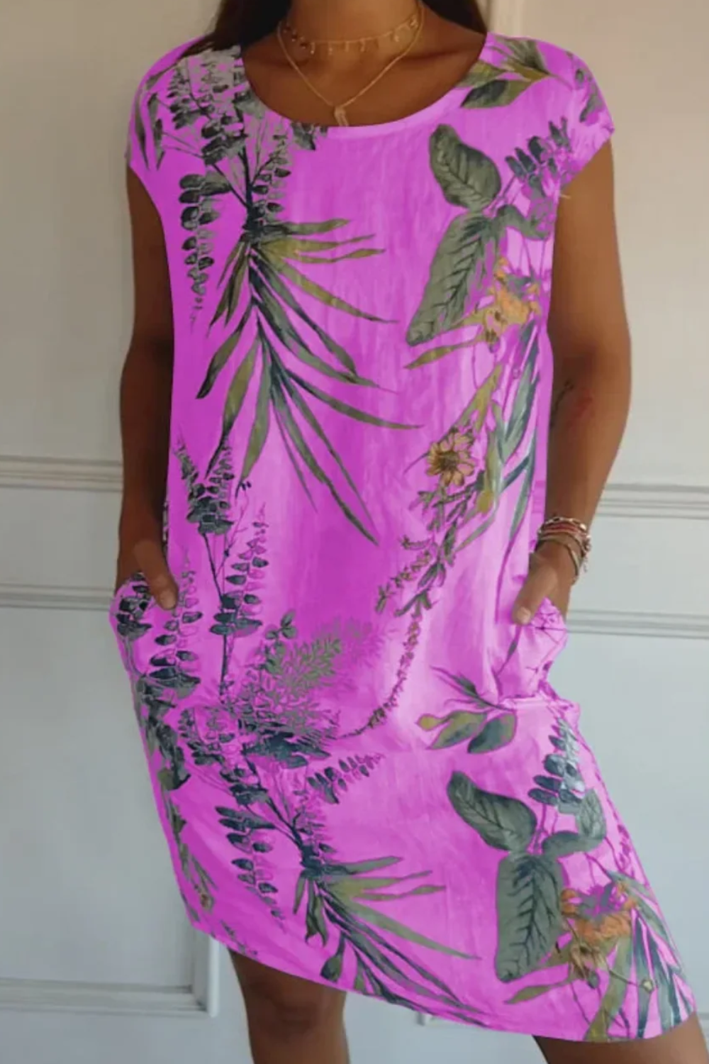 Damen lässiges geblümtes Kleid mit Taschen | Mini