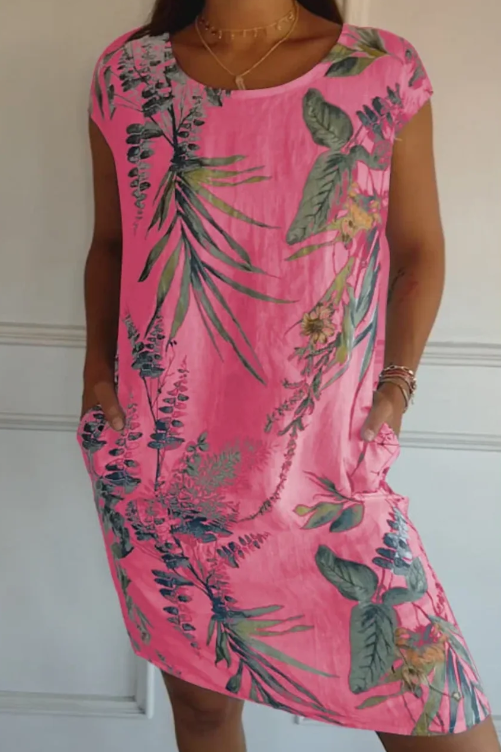 Damen lässiges geblümtes Kleid mit lockerer Passform und Taschen, ideal für sommerliche und entspannte Alltags-Outfits.