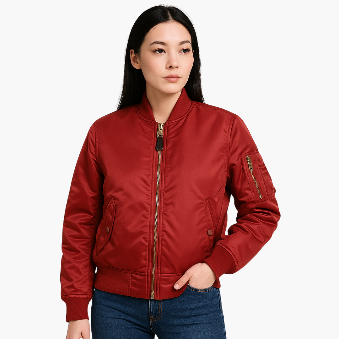 Damen-Bomberjacke mit geripptem Kragen und Taschen