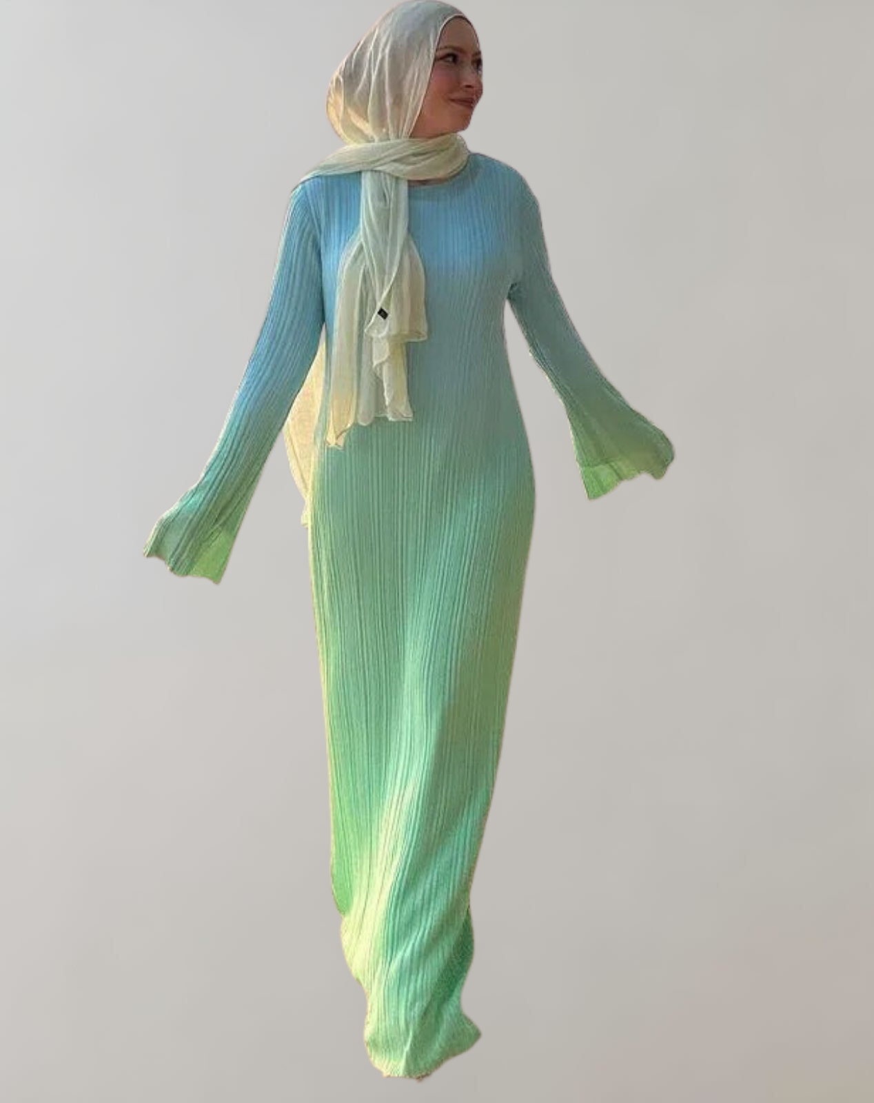 Daniela - Winter Elegant Gradient Plissee Flare Langarm O Hals Kleid