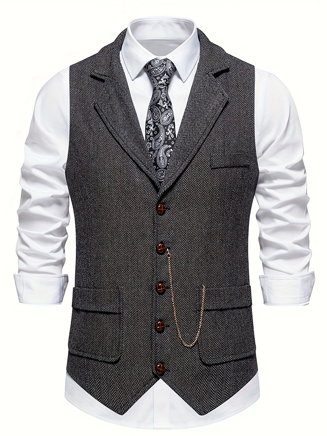 Verleihen Sie Ihrem Outfit das gewisse Etwas mit dem Edward Anzug Weste. Diese elegante, ärmellose Weste bietet genau den richtigen Mix aus Raffinesse und modernem Komfort, ideal für verschiedene Anlässe – ob formell oder lässig. Kombinieren Sie sie mit einem Hemd und dunklen Hosen, und Sie sind immer perfekt gekleidet.