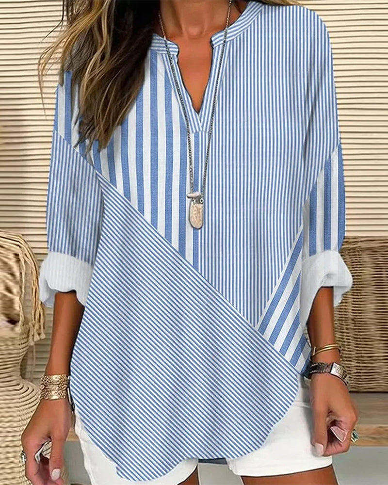 Emilia - Lässige gestreifte Tunikabluse mit V-Ausschnitt für Damen | Langärmliges gestreiftes Tunika-Oberteil für Damen