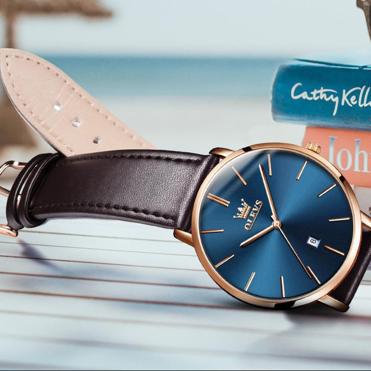 Die Emmerich Lederarmband-Herrenuhr mit Datumsanzeige ist der perfekte Begleiter für den modernen Mann, der sowohl Eleganz als auch praktische Funktionalität schätzt. Mit ihrem ultraflachen Quarzwerk bietet sie präzise Zeitmessung ohne zusätzliches Gewicht und überzeugt durch ihr minimalistisches Design, das sich angenehm am Handgelenk trägt. Das vegane Lederarmband verleiht ihr eine klassische Eleganz, die sowohl zu formellen Anlässen als auch zu legeren Outfits passt. Zudem sorgt die automatische Datumsanzeige dafür, dass Sie stets den Überblick über Ihr Tagesgeschehen behalten.