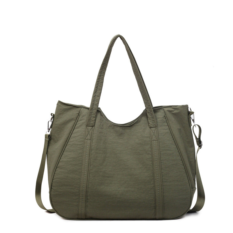 diese minimalistische nylon-tragetasche vereint funktionalität mit modernem alltagsdesign. durch ihr leichtes, wasserabweisendes material ist sie perfekt für arbeit, uni oder wochenendausflüge geeignet. mit ihrer klaren form und den dezenten farbtönen passt sie zu jedem outfit – ein vielseitiges accessoire für jeden tag.