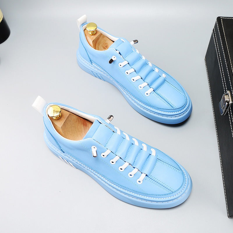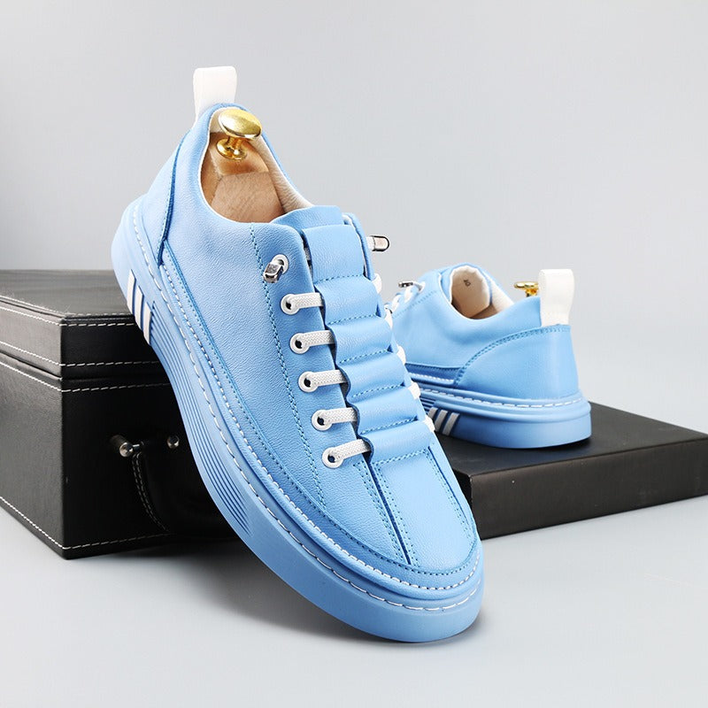 Diese lässigen Herrenturnschuhe zeichnen sich durch ihr modernes und optisch ansprechendes Design aus. Der pastellblaue Farbton, kombiniert mit metallischen Details an den Schnürsenkeln, verleiht ihnen einen unverwechselbaren Charakter, der eine urbane Ästhetik mit einem Hauch von lässiger Raffinesse verbindet.