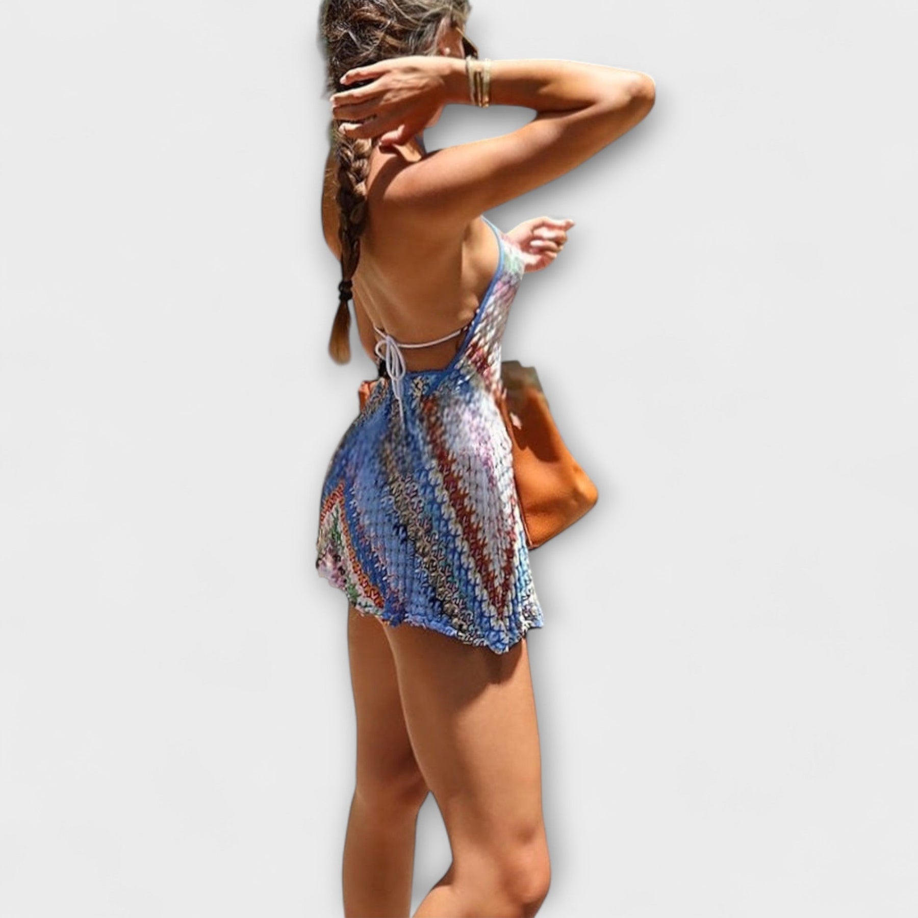 Helina - Bunt gestrickter rückenfreier Neckholder-Romper
