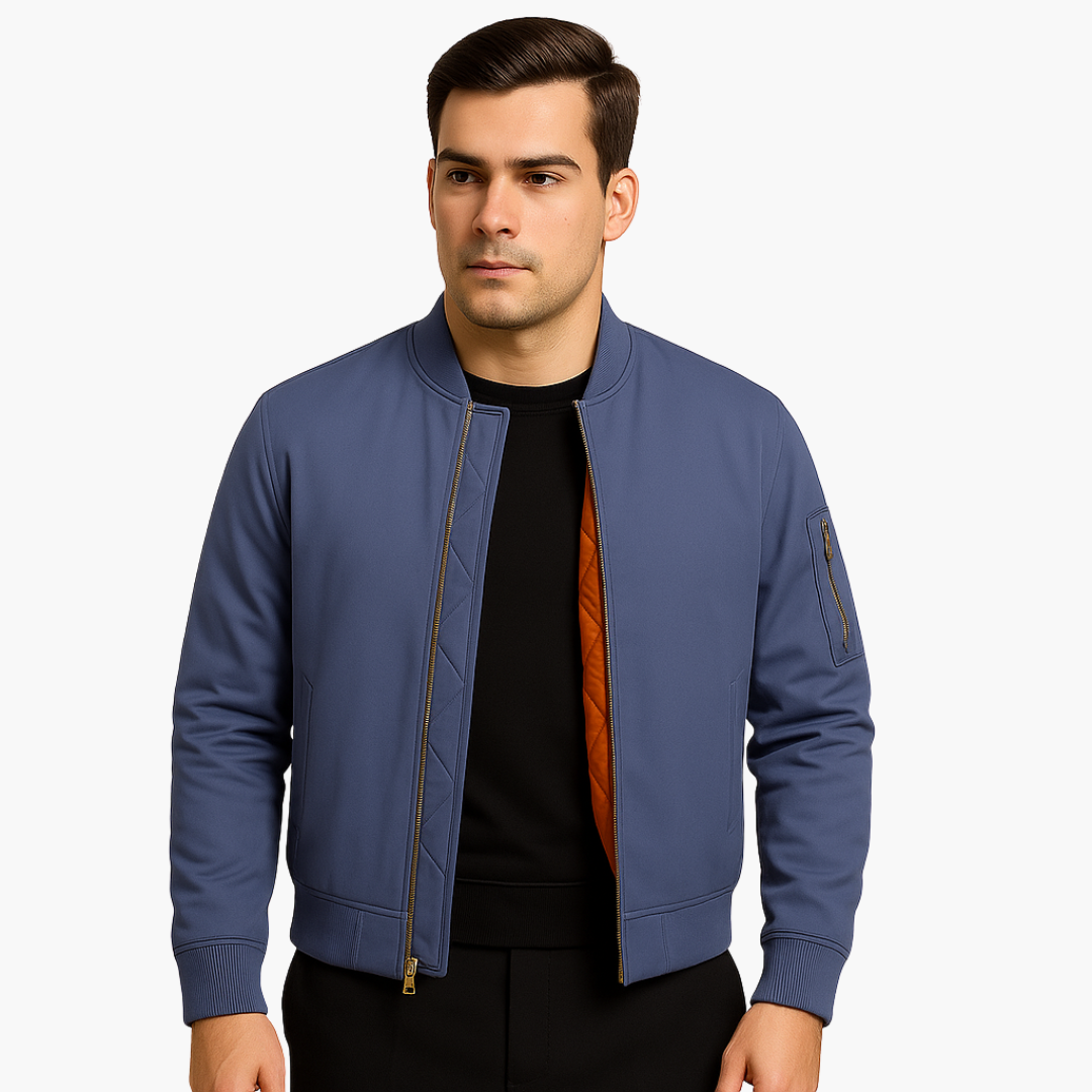 Herren-Bomberjacke mit Frontreißverschluss und Rippdetails