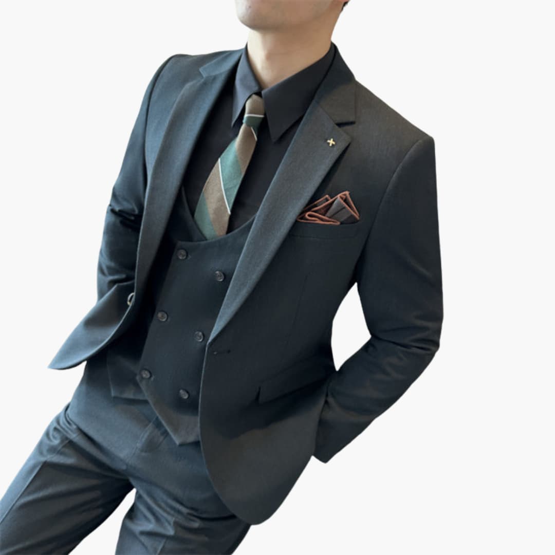 • Dreiteiliges Set: Inklusive Sakko, Weste und flacher Anzughose
