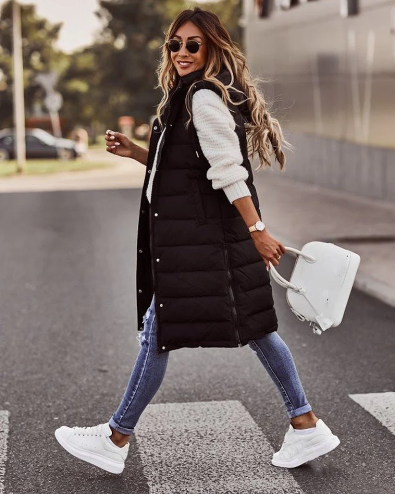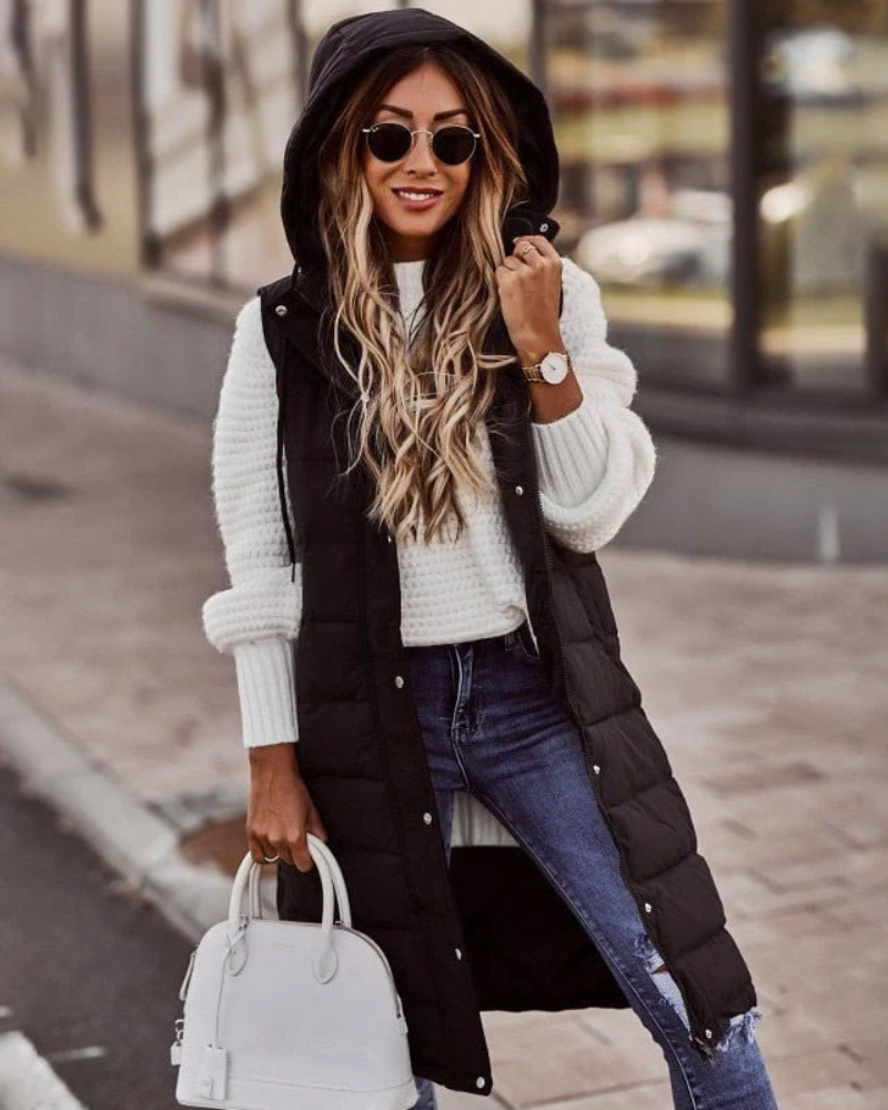 Setzen Sie mit der Ilka Lange Daunenweste mit Kapuze stilvolle Akzente!