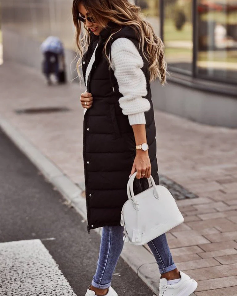 Ilka | Damen Lange Daunenweste | mit Kapuze