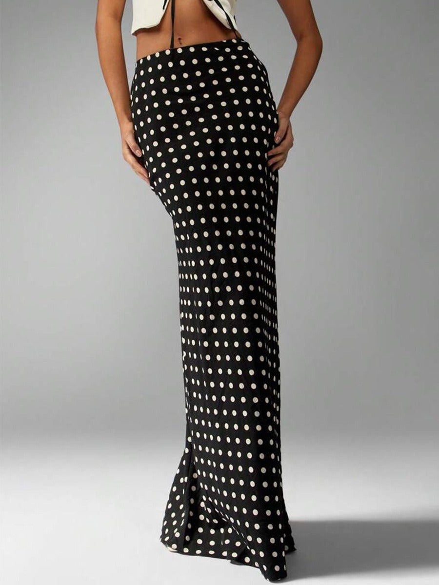 Zeitlose Eleganz wird mit diesem schmeichelhaft geschnittenen und schmeichelnden langen Tupfenrock neu erfunden.