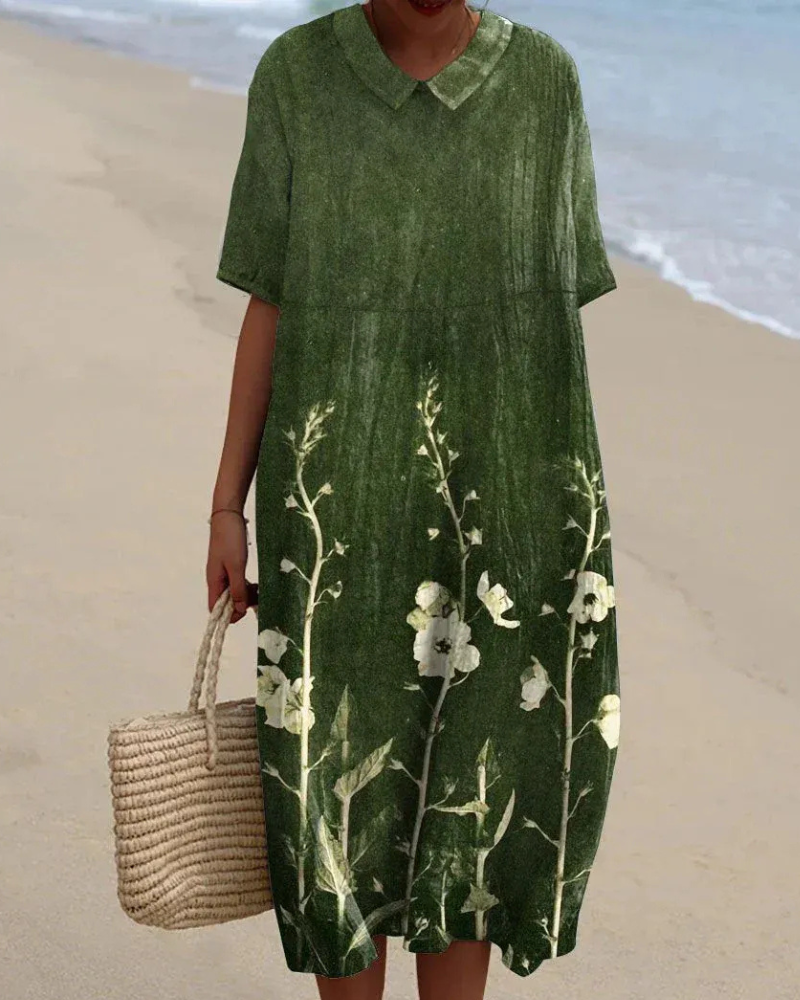 Lockeres geblümtes Sommerkleid für Damen | Midi
