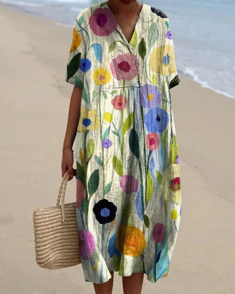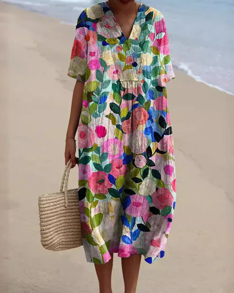 Das Lockere geblümte Sommerkleid für Damen bringt frische Leichtigkeit in deinen Alltag. Mit seinem lebendigen Muster und der bequemen Passform ist es die ideale Wahl für warme Tage. Ob am Strand, beim Stadtbummel oder im Garten – dieses Kleid versprüht pure Sommerfreude.