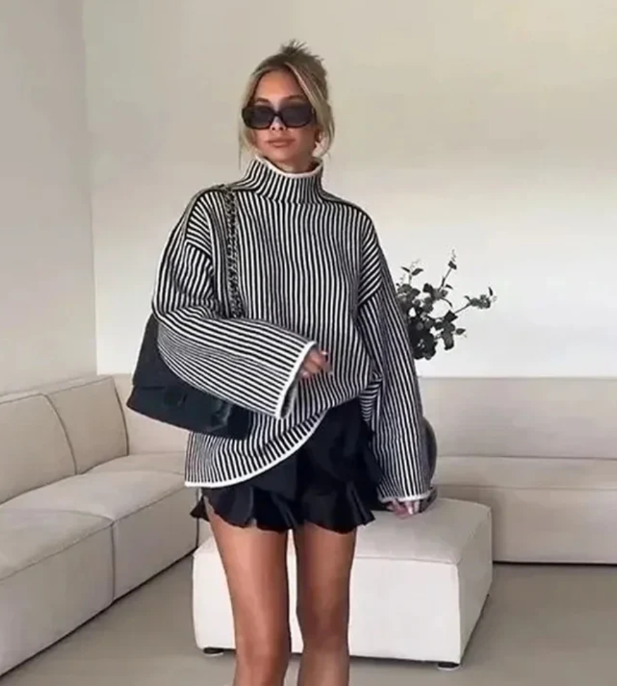 - Stil: Gestreifter Rollkragenpullover