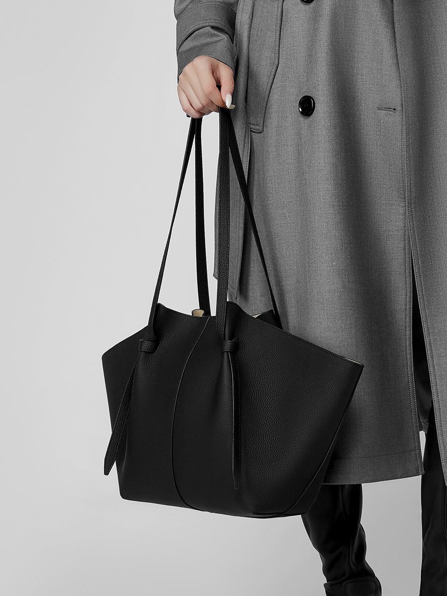 diese elegante tragetasche aus kunstleder vereint moderne schlichtheit mit zeitlosem charme. die abnehmbare innentasche sorgt für organisation und flexibilität, während das klare design sie zu einem vielseitigen begleiter für büro, city oder abendessen macht – stilvoll, funktional und mühelos kombinierbar.