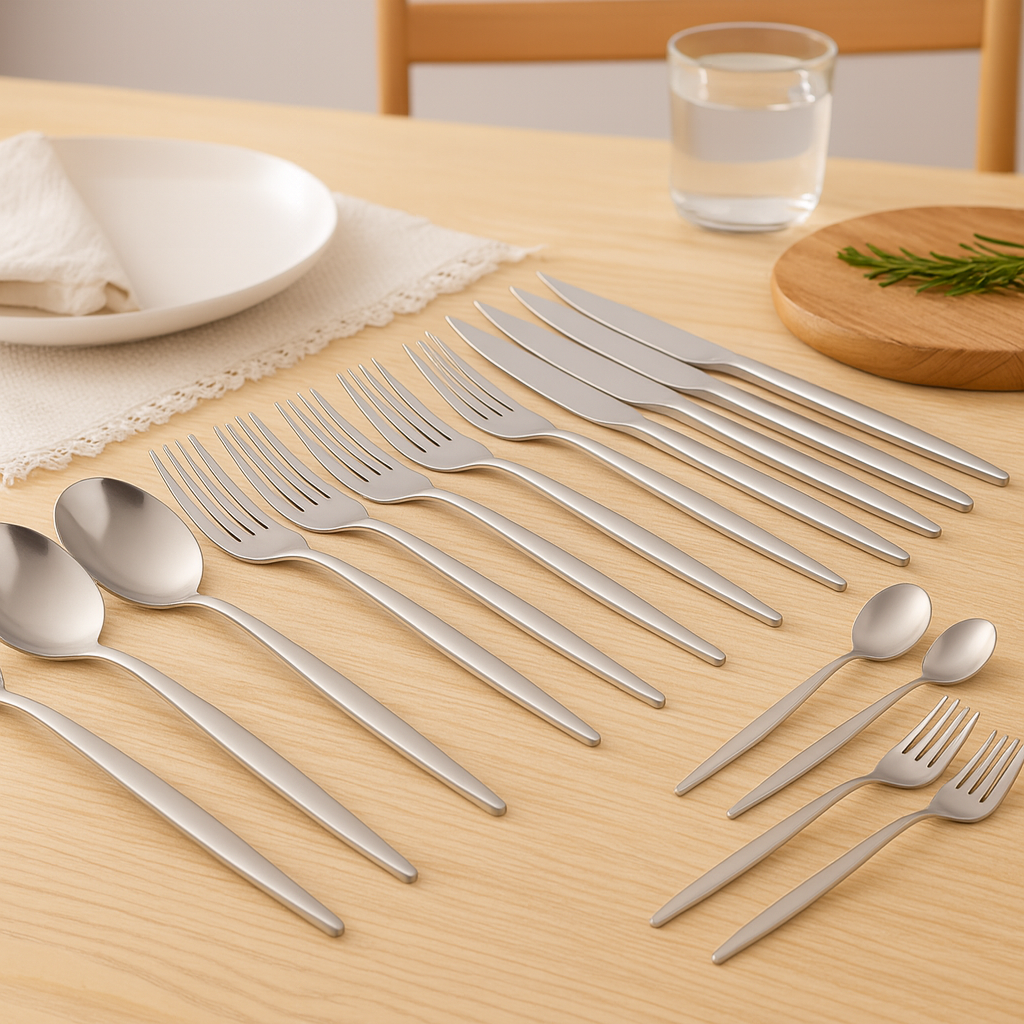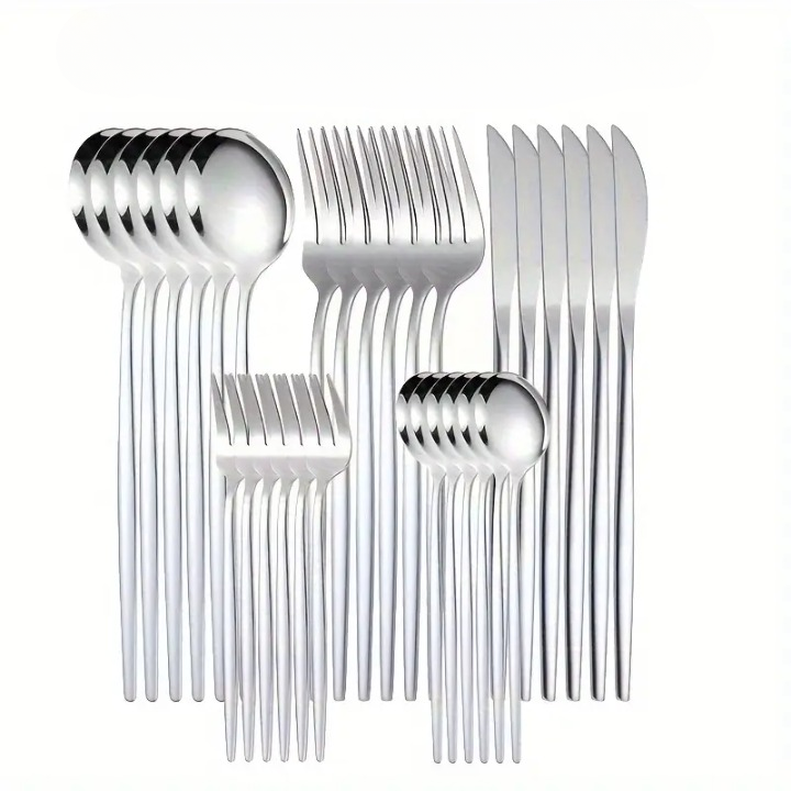 • Vollständiges Set: Enthält 30 Teile mit Messern, Gabeln, Löffeln und Dessertlöffeln.