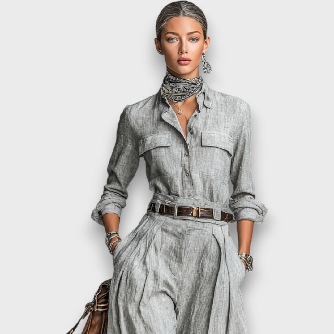 Malvine – Zweiteiliges Set aus Baumwoll-Leinen mit Gürtel