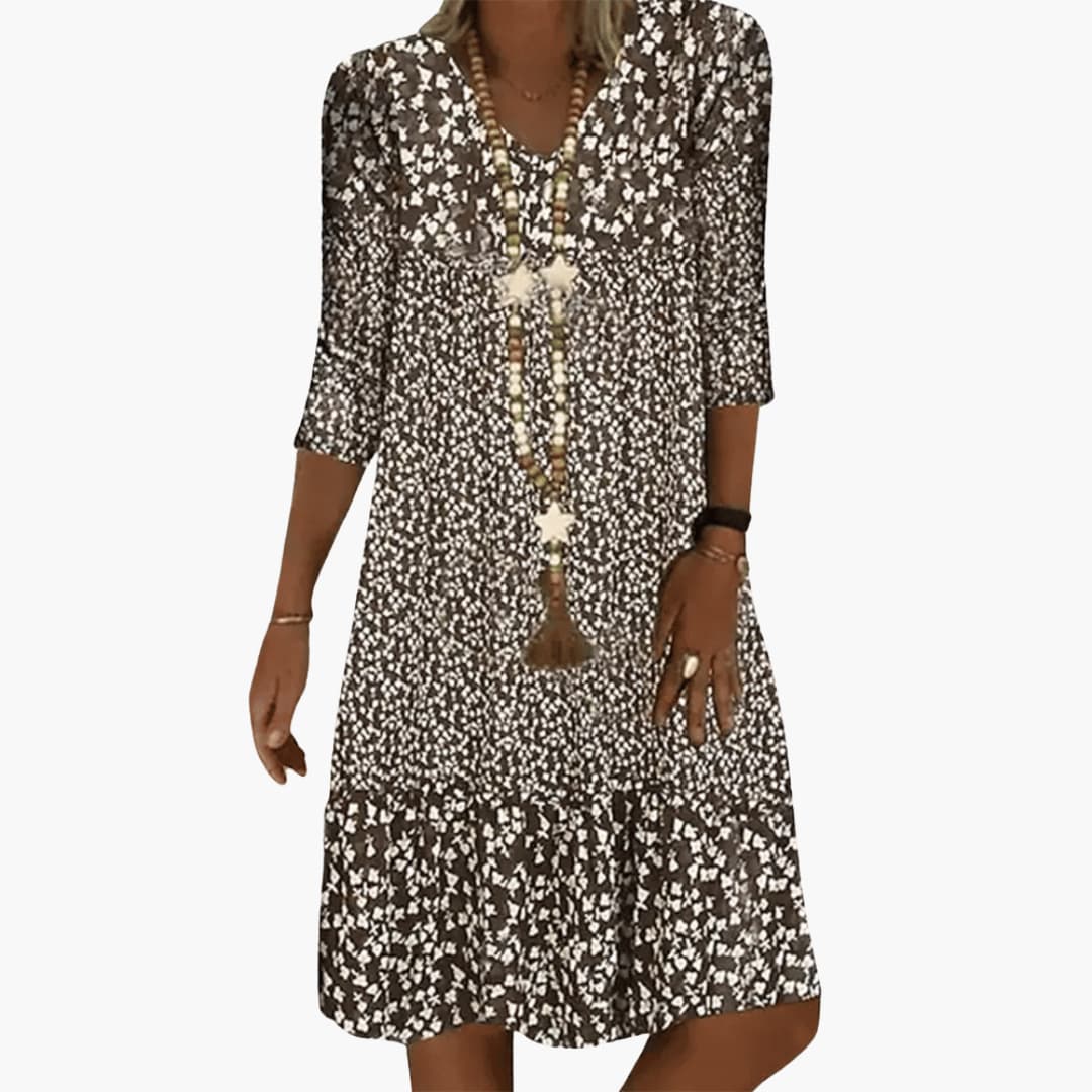 Midikleid für Damen - Locker, Blumenmuster & V-Ausschnitt
