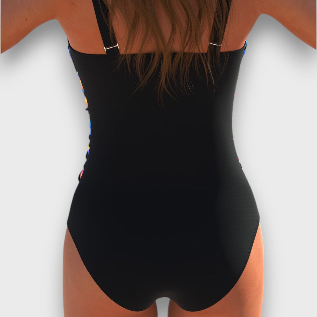 Nerine – Schwarzer Badeanzug mit raffiniertem Twist
