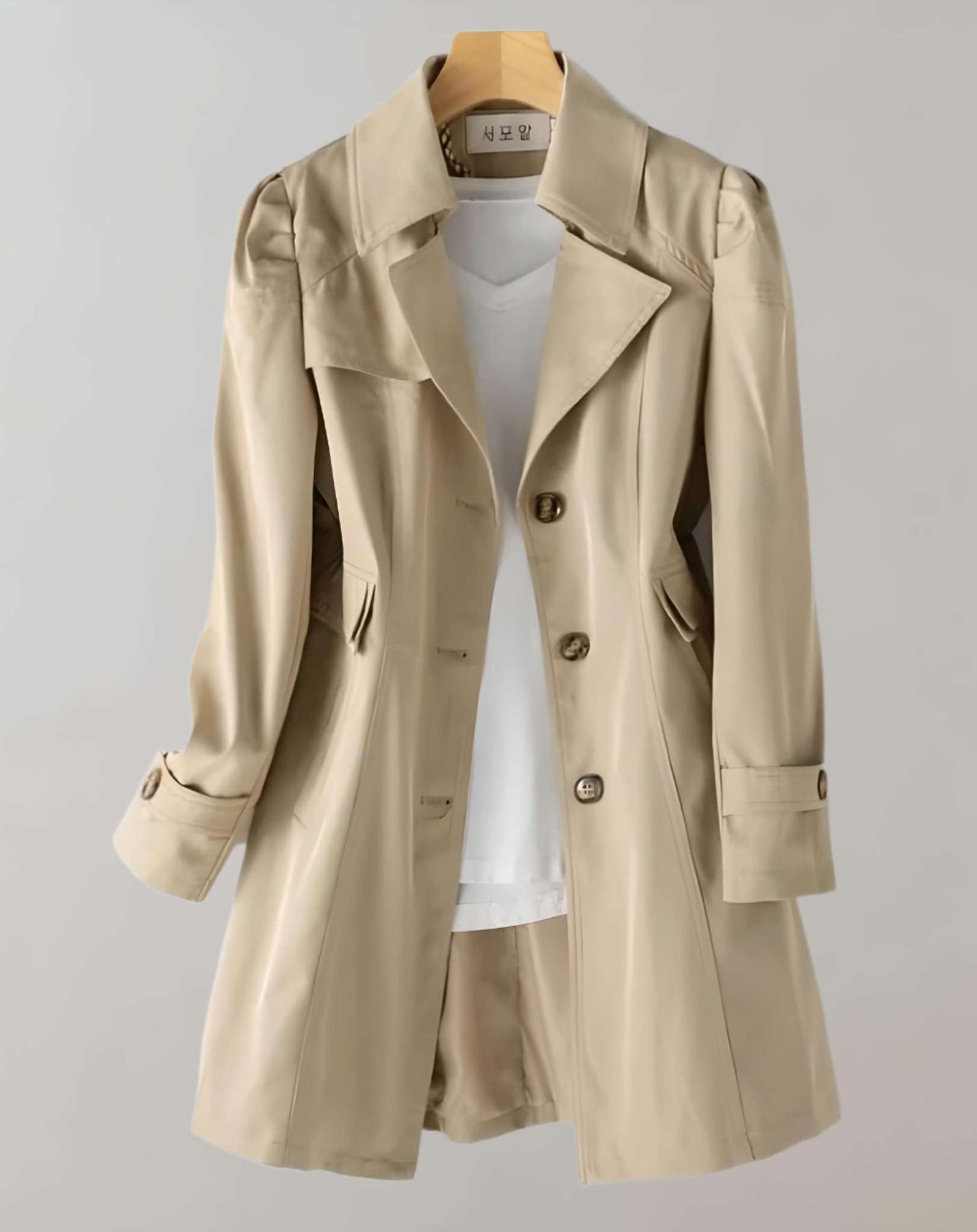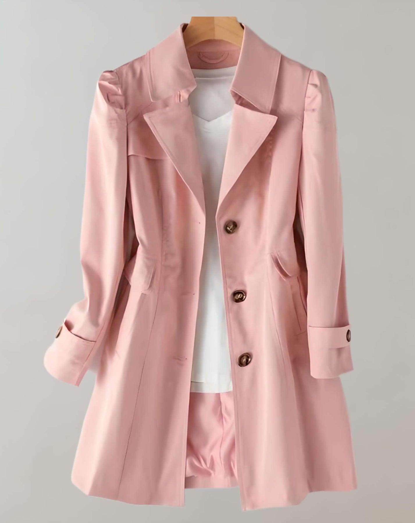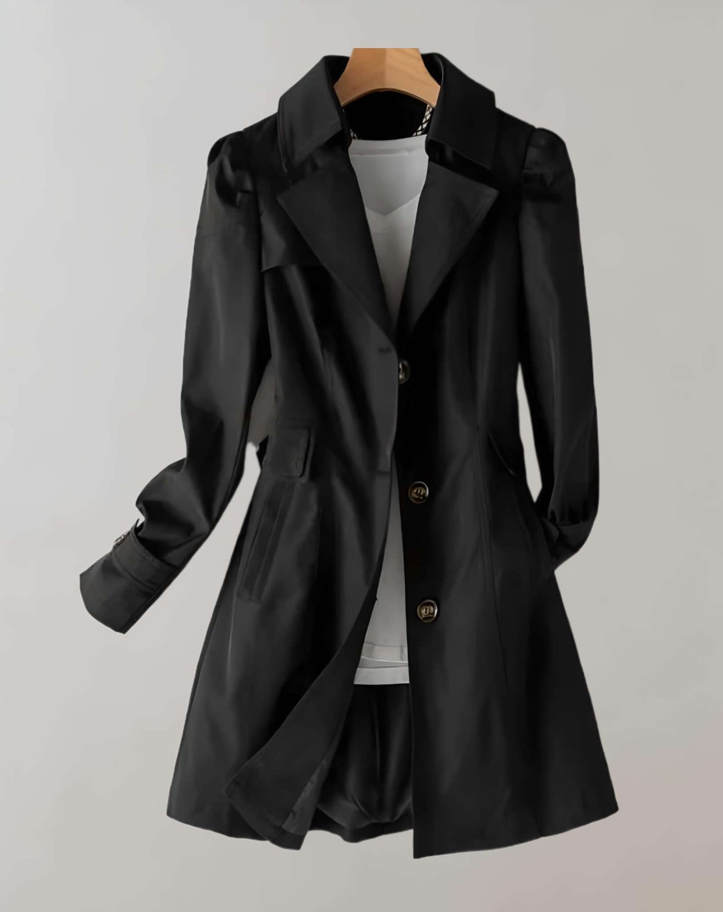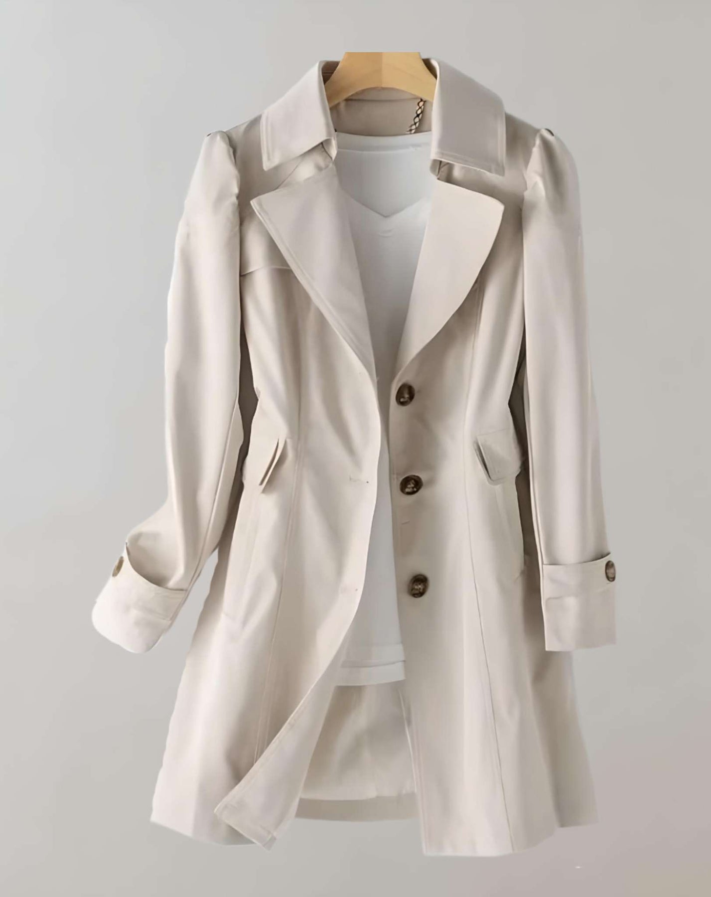 Nina - Lange geknöpfte Manteljacke mit großem Kragen und Seitentaschen Jacke