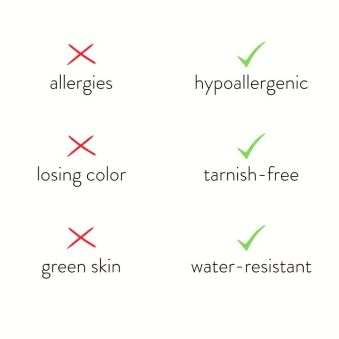 Hergestellt aus wasserdichtem Edelstahl müssen Sie sich nie wieder um das Verblassen oder Anlaufen von Schmuck sorgen!
