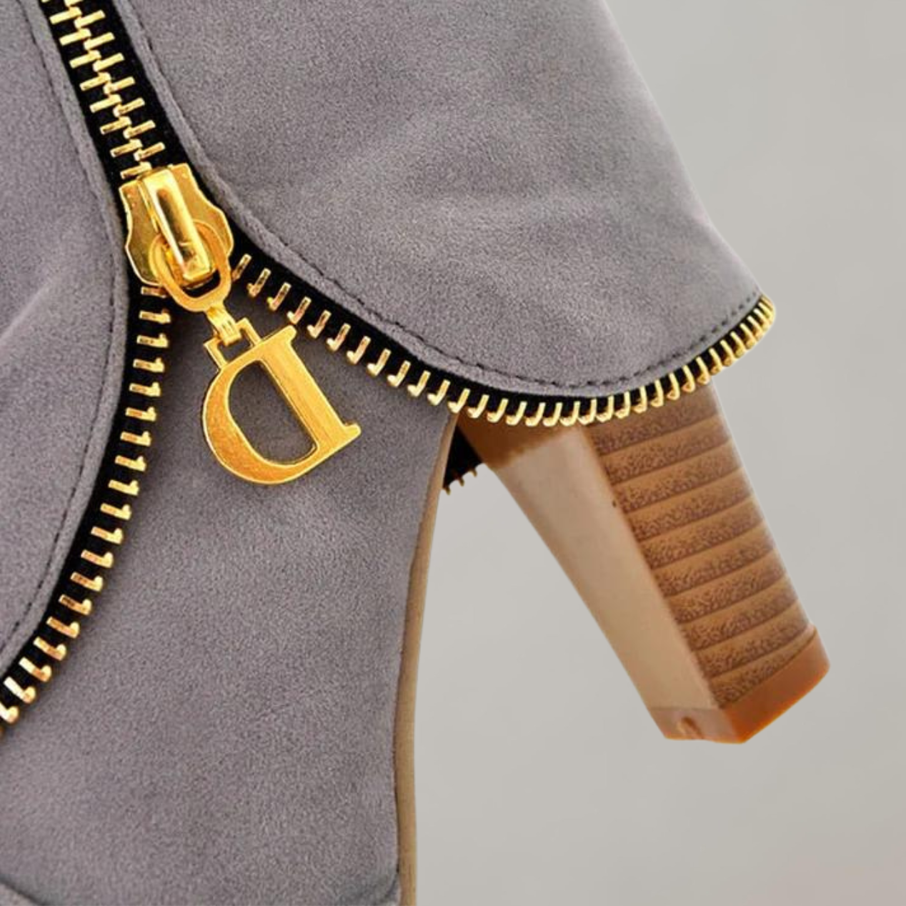 Diese Stiefel sind die perfekte Mischung aus Stil und Komfort. Mit ihrem eleganten Design in klassischem Rot oder Schwarz bieten sie einen modernen, selbstbewussten Look. Der hohe Absatz zaubert eine schlanke Silhouette, während der goldene Reißverschluss nicht nur ein auffälliges Detail darstellt, sondern auch für einfaches An- und Ausziehen sorgt.