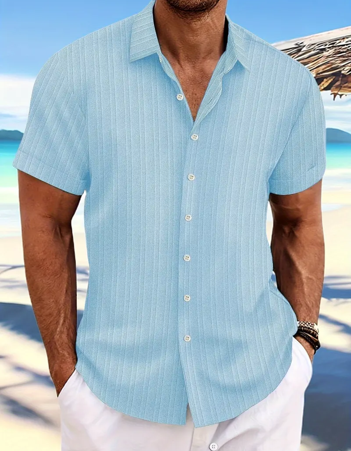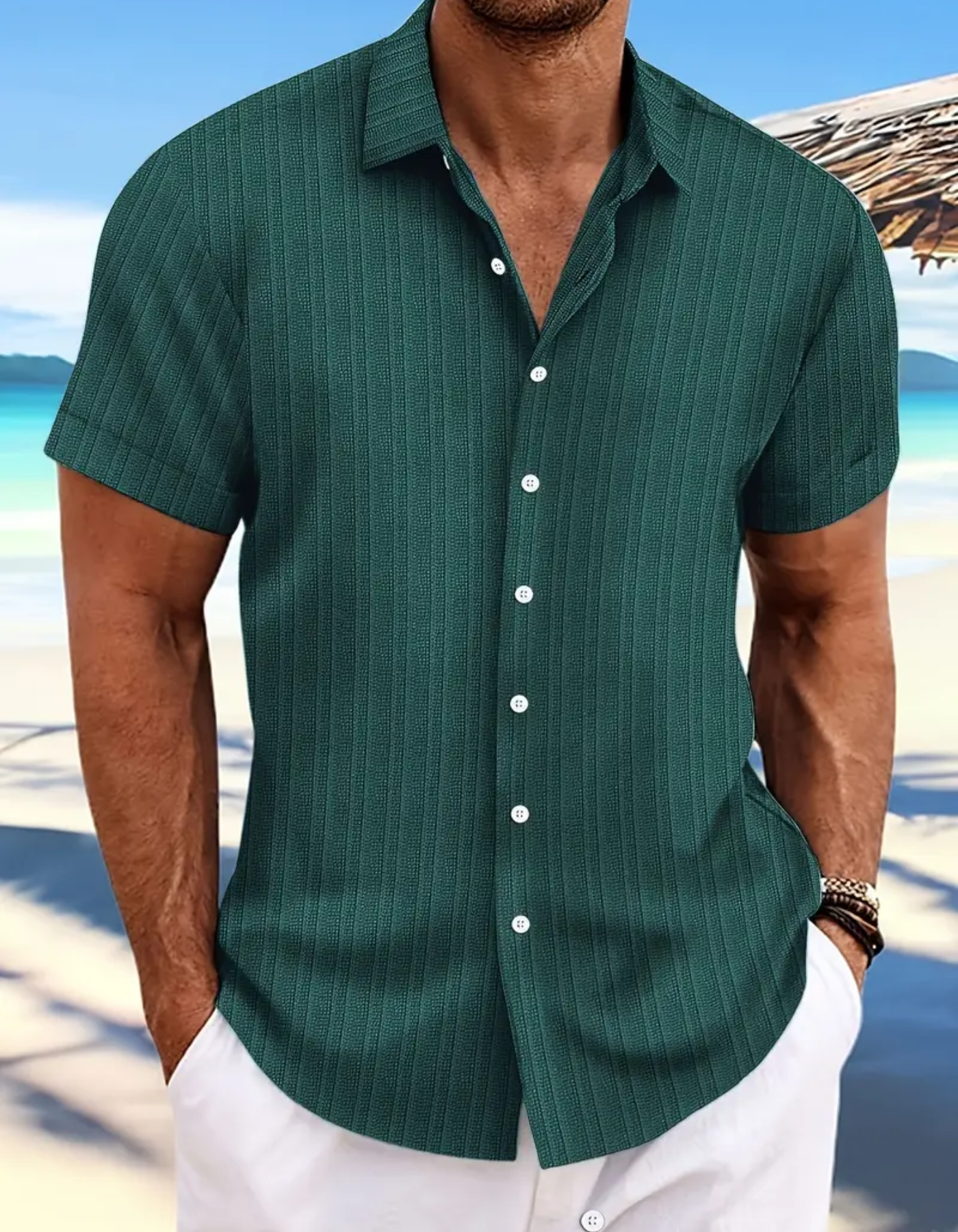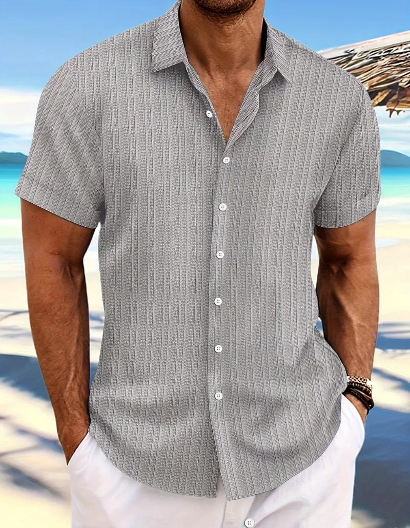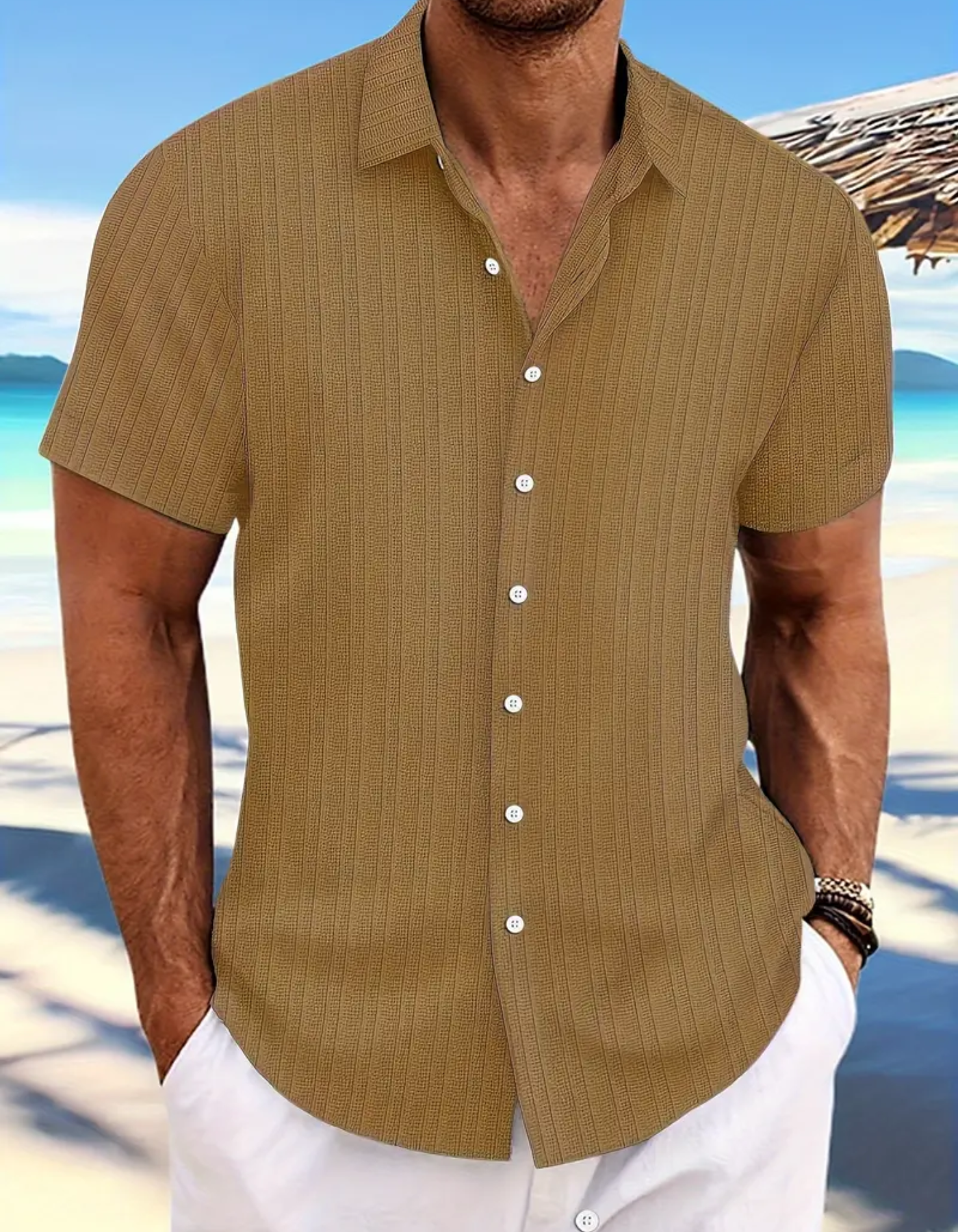 Wir stellen Ihnen Robbie vor, die perfekte Mischung aus lässiger Eleganz. Dieses Kurzarm hemd verfügt über einen lockeren Schnitt und eine klassische Button-Down-Vorderseite, was es zu einem vielseitigen Teil für Ihre Garderobe macht. Ob Sie zu einem Freizeitausflug aufbrechen oder zu Hause entspannen, Robbie sorgt den ganzen Tag über für Komfort und Stil. Die freizeithemd verleiht ihm zeitlose Eleganz, während das leicht tragbare Design einen raffinierten, aber entspannten Look bietet.