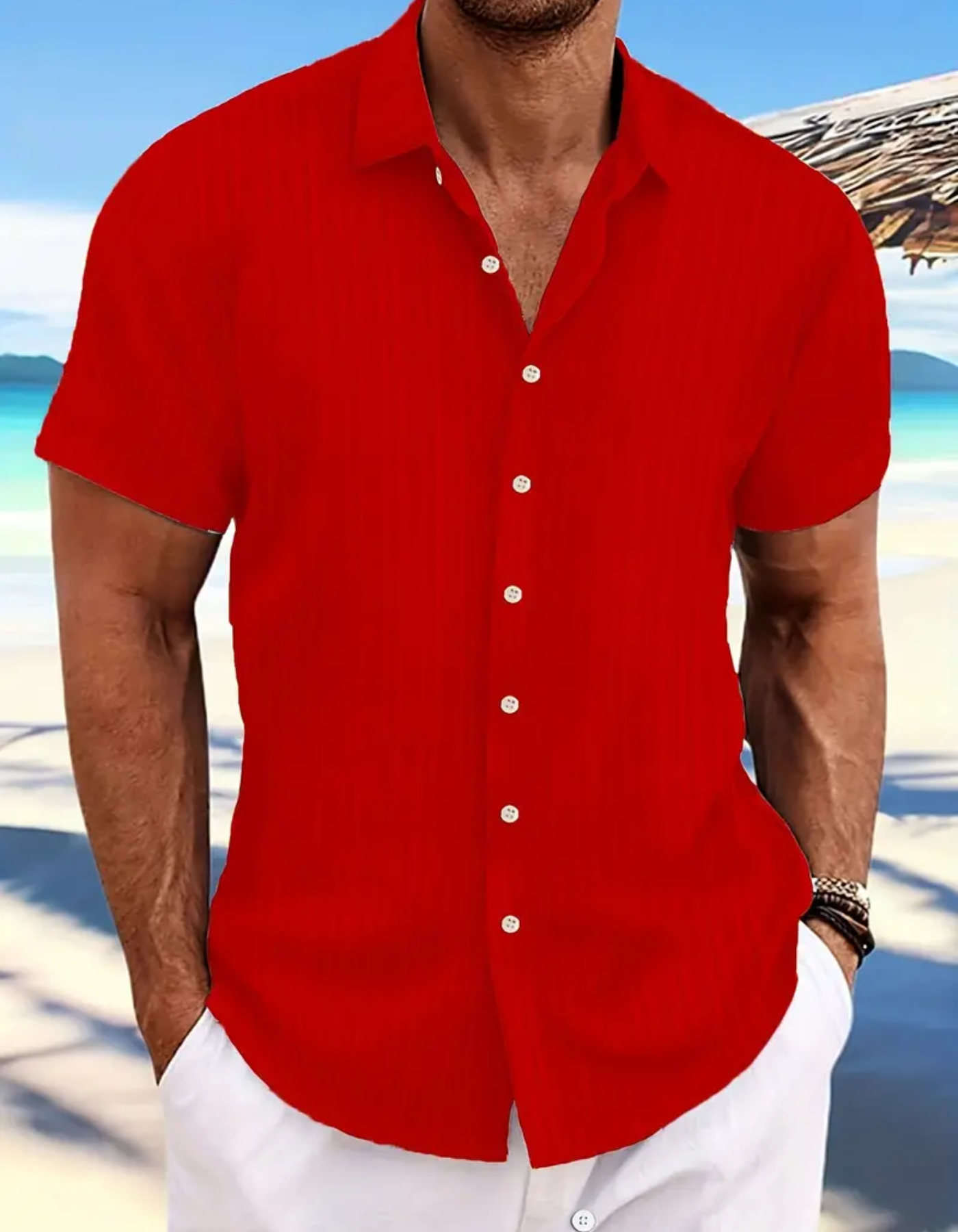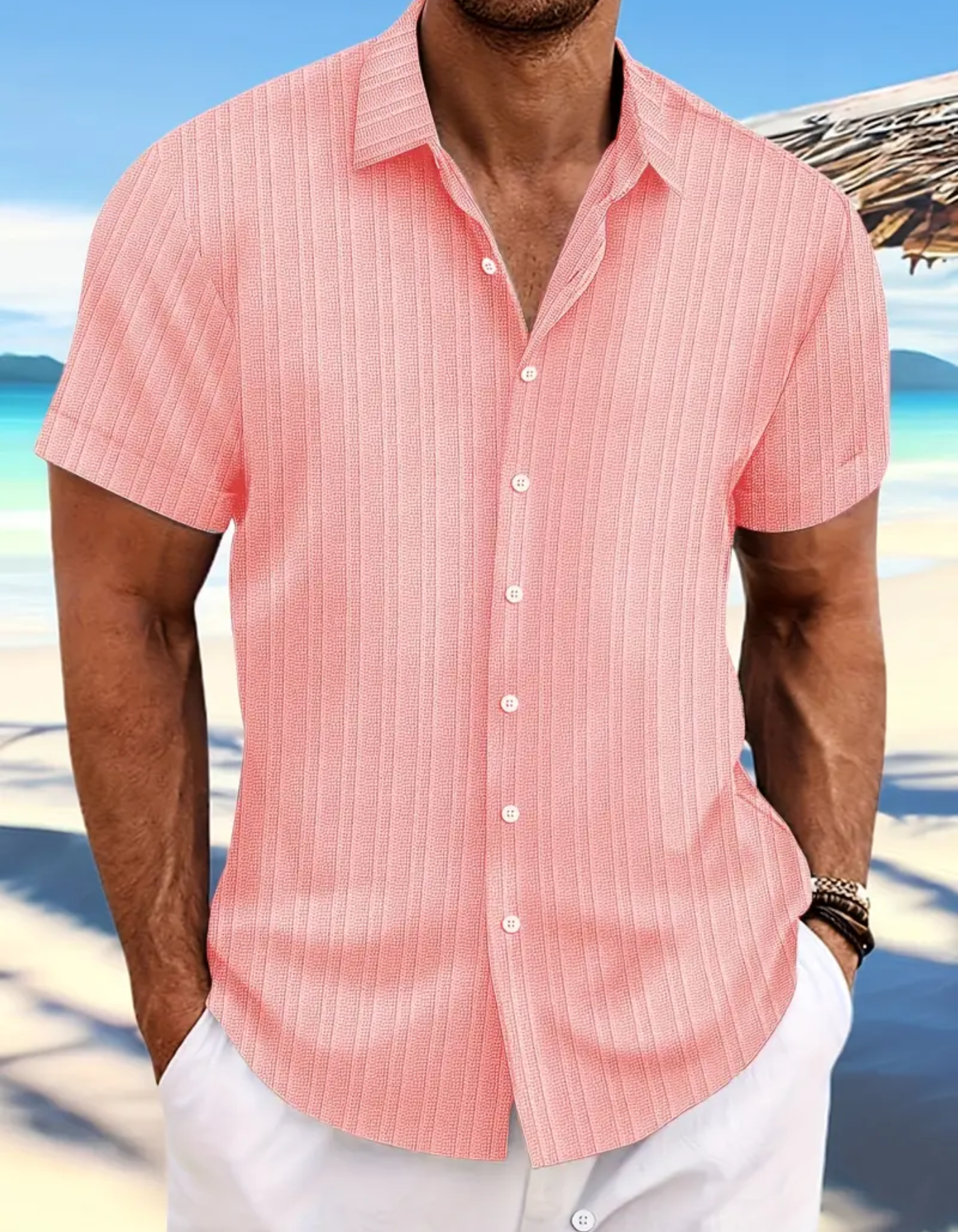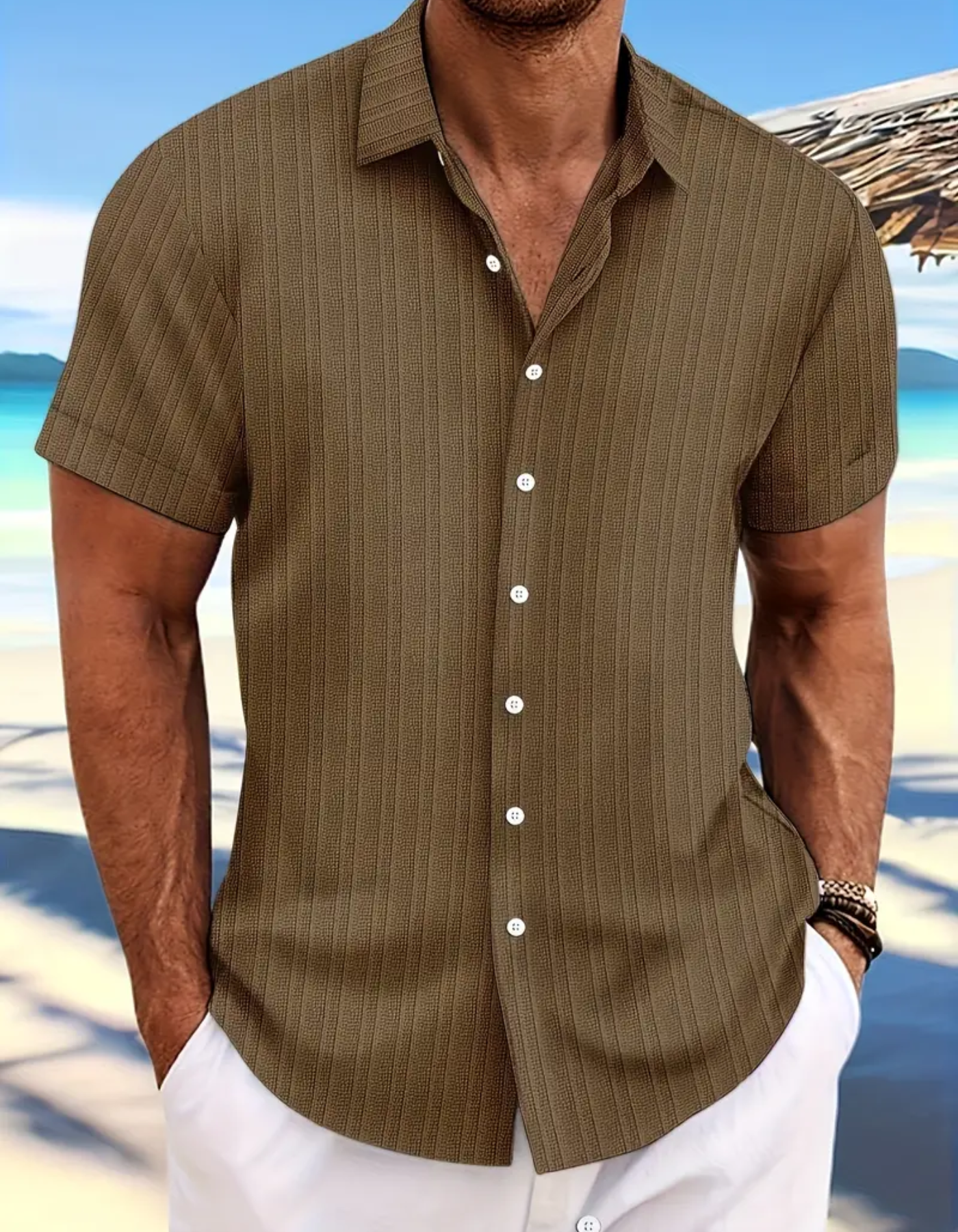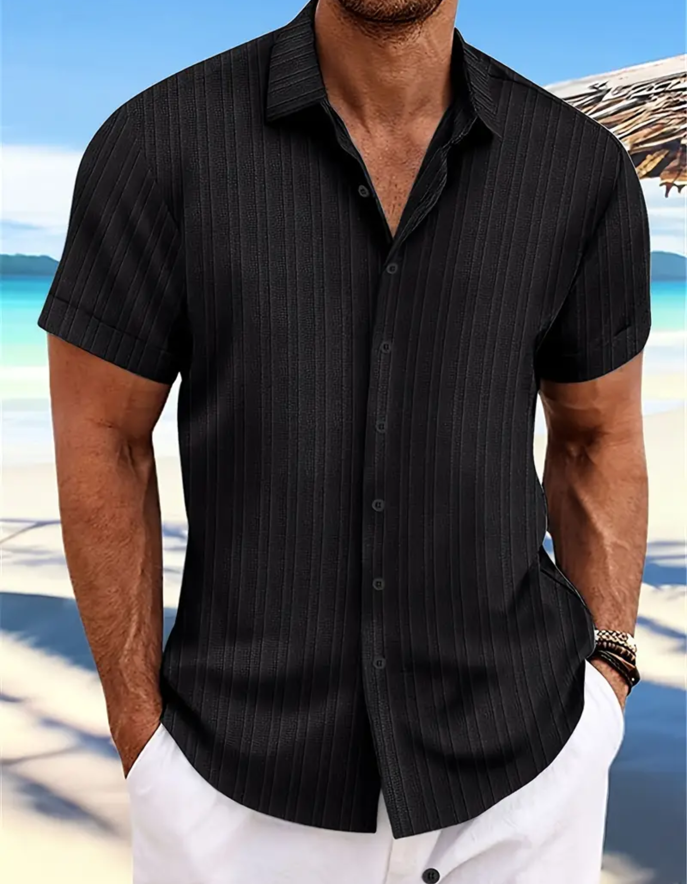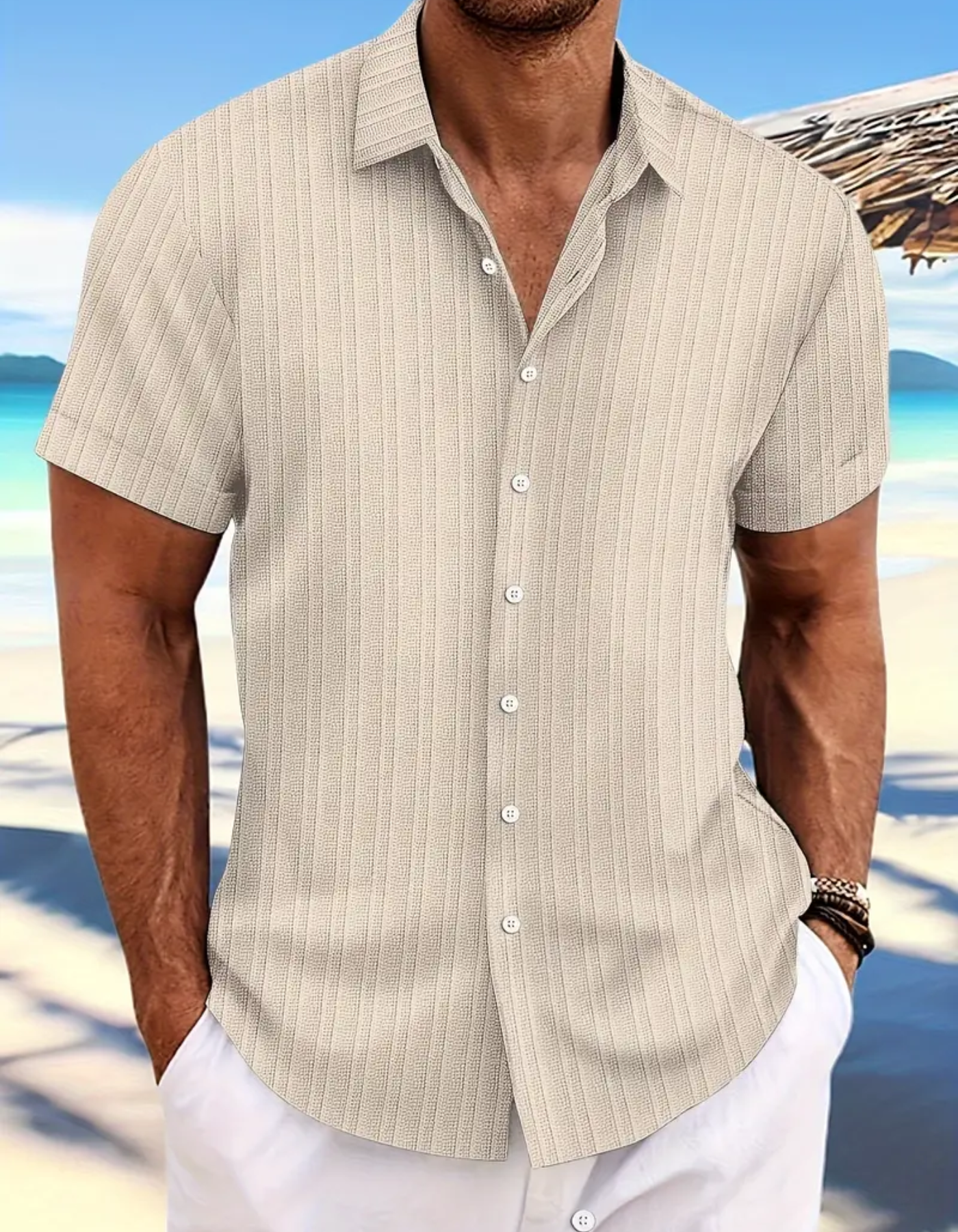 Wir stellen Ihnen Robbie vor, die perfekte Mischung aus lässiger Eleganz. Dieses Kurzarm hemd verfügt über einen lockeren Schnitt und eine klassische Button-Down-Vorderseite, was es zu einem vielseitigen Teil für Ihre Garderobe macht. Ob Sie zu einem Freizeitausflug aufbrechen oder zu Hause entspannen, Robbie sorgt den ganzen Tag über für Komfort und Stil. Die freizeithemd verleiht ihm zeitlose Eleganz, während das leicht tragbare Design einen raffinierten, aber entspannten Look bietet.