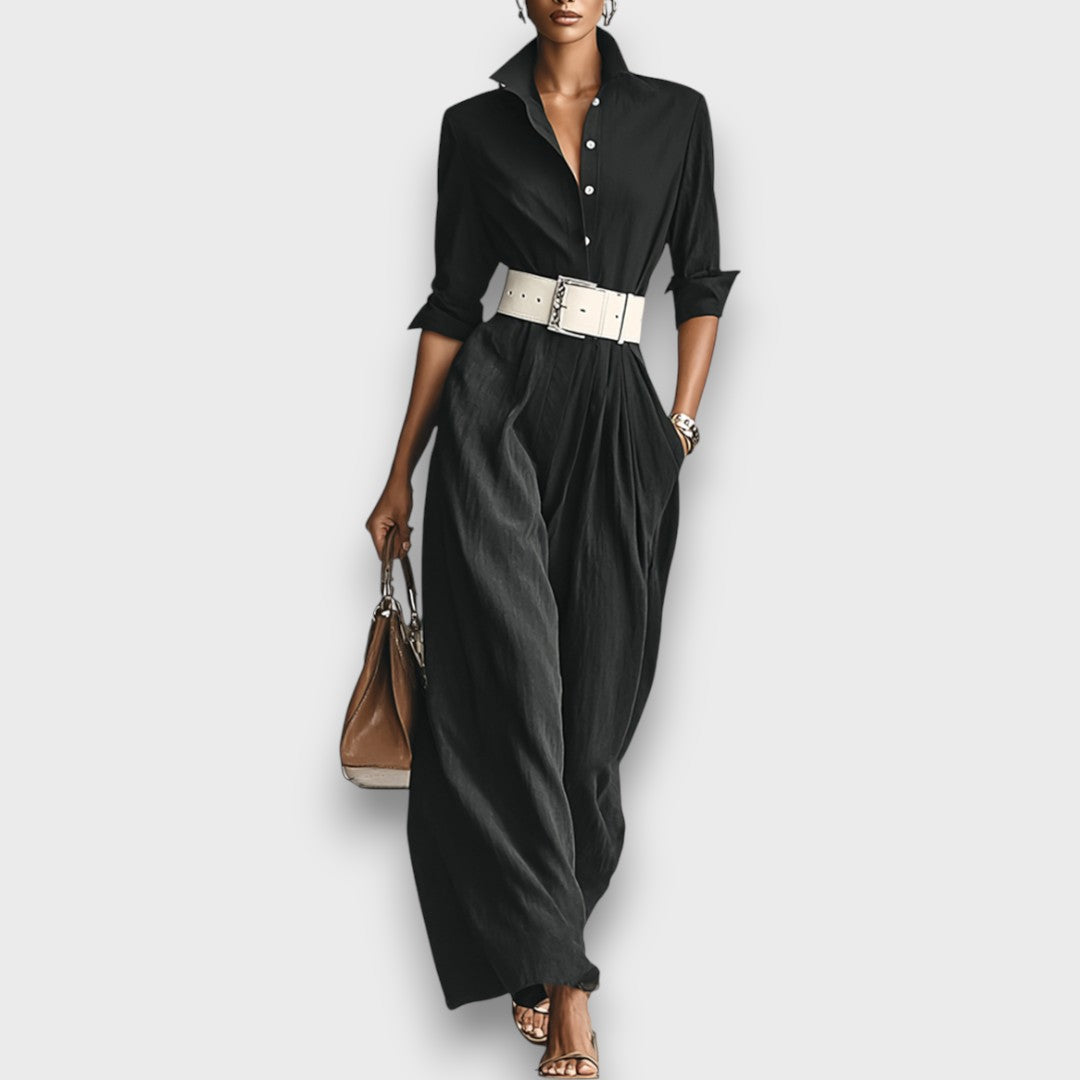 Serenya – Langer Einteiler mit Reverskragen und Taillengürtel